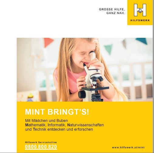 DieBroschüre„MINTbringt’s!“liegtinunserenFamilien-und Beratungszentrenauf,istunterservice@noe.hilfswerk.atzubestellen bzw.aufwww.hilfswerk.at/mintonlineabrufbar.