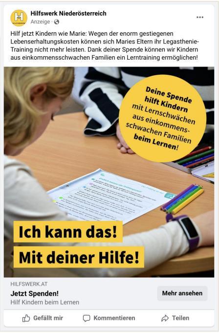 MitdemThemaLerntrainingwerdenseitMitteJunierstmalsgezieltonlineSpendenfürdas Hilfswerkgesammelt.DieSpendenaufrufewerdenüberSocialmedia(FacebookundInstagram) veröffentlichtundlaufenfüreinMonat.SomöchtenwirgezieltdasgroßePotenzialnutzen,dasim Online-Spendenbereichliegt,nutzen.EineFolgekampagneistbeiErfolgimSeptembergeplant.