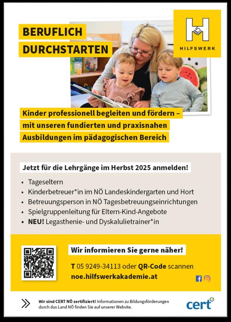 AbdenHerbstlehrgängen2025 könnenFörderanträgeüberdieNÖBildungsförderunggestelltwerden. EineÜbersichtüberdieVoraussetzungenunddieHöhederFörderungen sindhierzufinden: https://www.noe.gv.at/bildungsfoerderung
