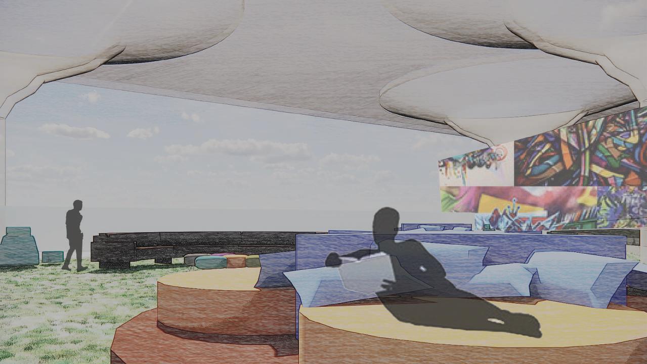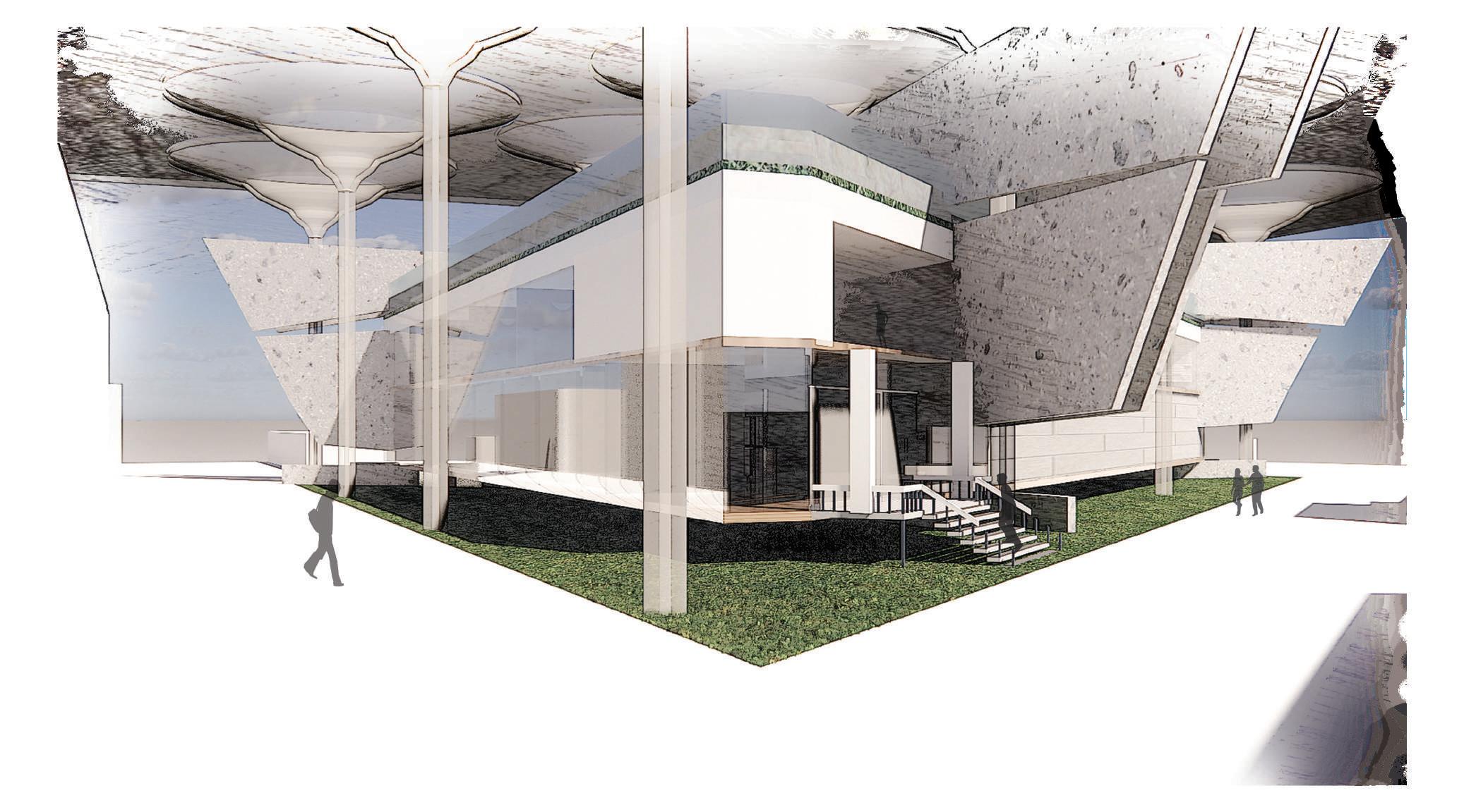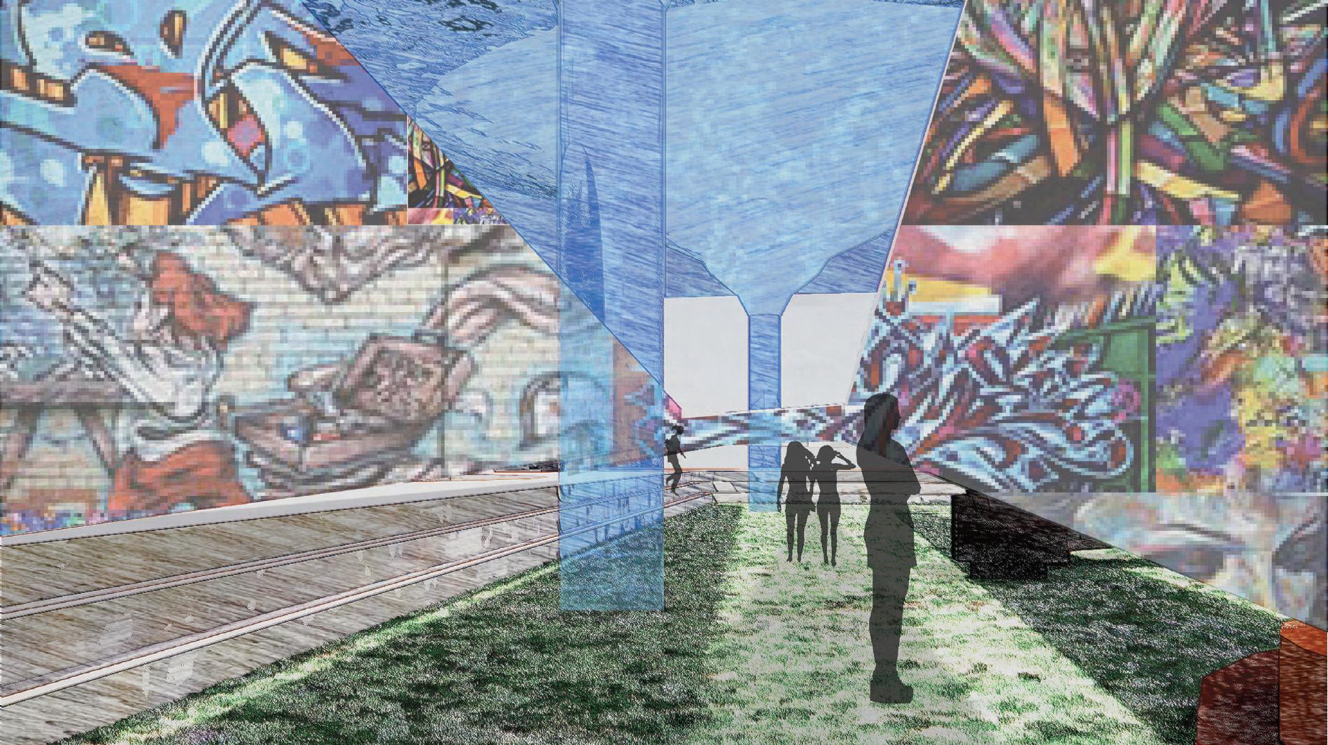 The Spring Garden Revification Center, located in Philadelphia, Pennsylvania is a public space for locals to gather, host events, take classes, attend therapy and provide goods for the community. The site currently sits on top of an abandoned subway station that houses graffiti art from various artists over the years. In this design, the graffiti is relocated onto the concrete supports that are extruded from the building as a display onto its roof garden. The building is supported by the double layered columns that transform into a roof system for the center.