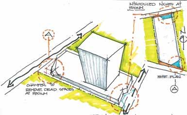 A. The actual site is fairly small with a coverage of 0.25Ha which make it difficult to have outdoor areas and surface level parking.