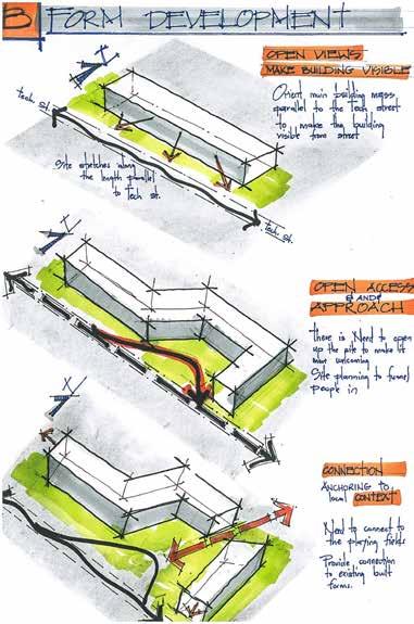 [4.] The design solution is rooted to its site by belonging to it and becoming of it. Site opportunities and challenges are embraced to inform the design solution. Site geometry and neighbourhood context is careful studied to inform the design.