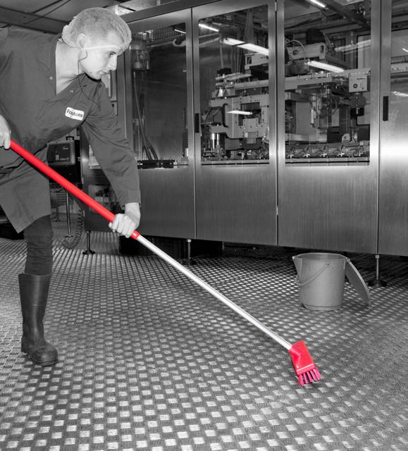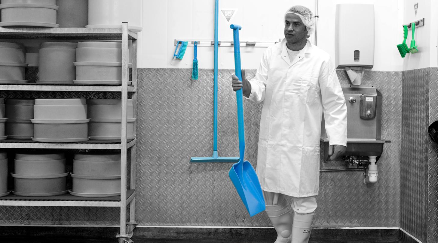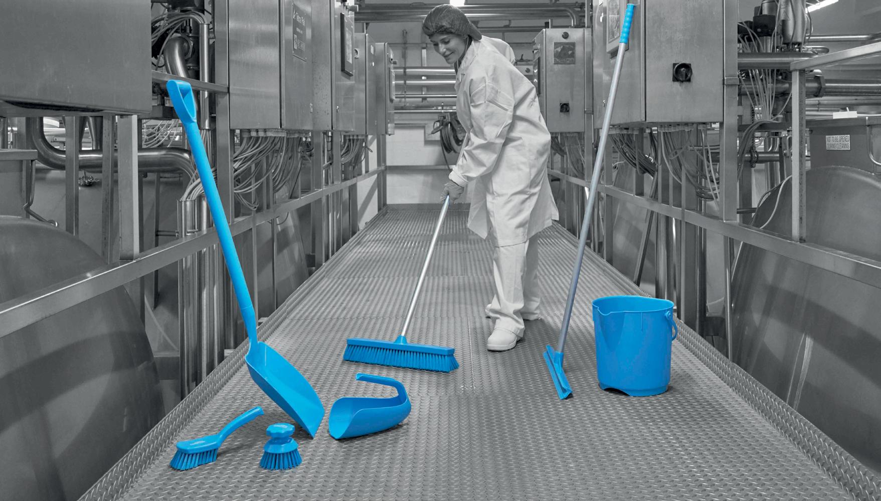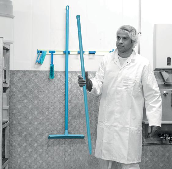 Colour coded cleaning tools in the food industry promotes departmental segregation and minimises the chances of cross-contamination.