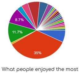 WhatpeoplelikedthemostaboutEWeek: 36outof103participantsvotedfortheirfriends astheirfavouritepartofEWeek Oneanonymous studentsaidthattheywere“abletomakemany morefriends”and“spendtimewiththem”Thisis notsurprising,aseveryonelikestohangoutwith theirfriends.