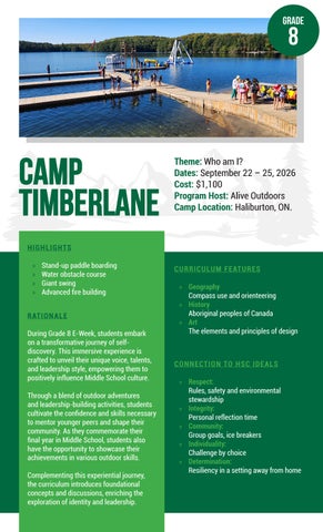 During Grade 8 E-Week, students embark on a transformative journey of selfdiscovery. This immersive experience is crafted to unveil their unique voice, talents, and leadership style, empowering them to positively influence Middle School culture.