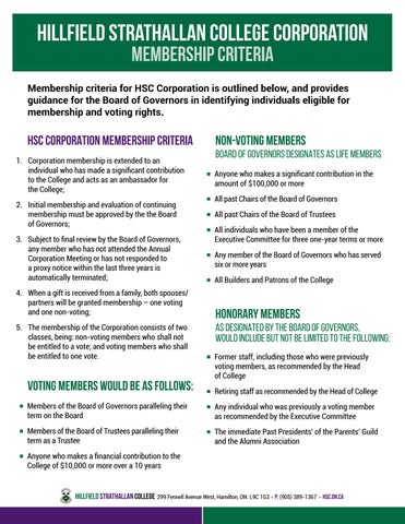 Membership criteria for HSC Corporation is outlined below, and provides guidance for the Board of Governors in identifying individuals eligible for membership and voting rights.