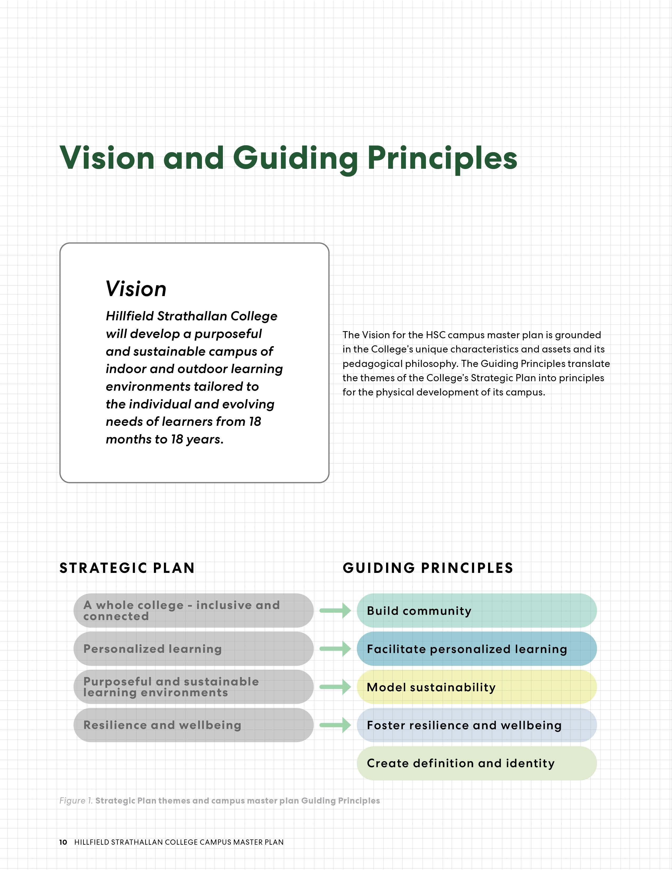 01. A Vision for HSC’s Campus provides the vision and guiding principles that were developed to guide the campus master plan.