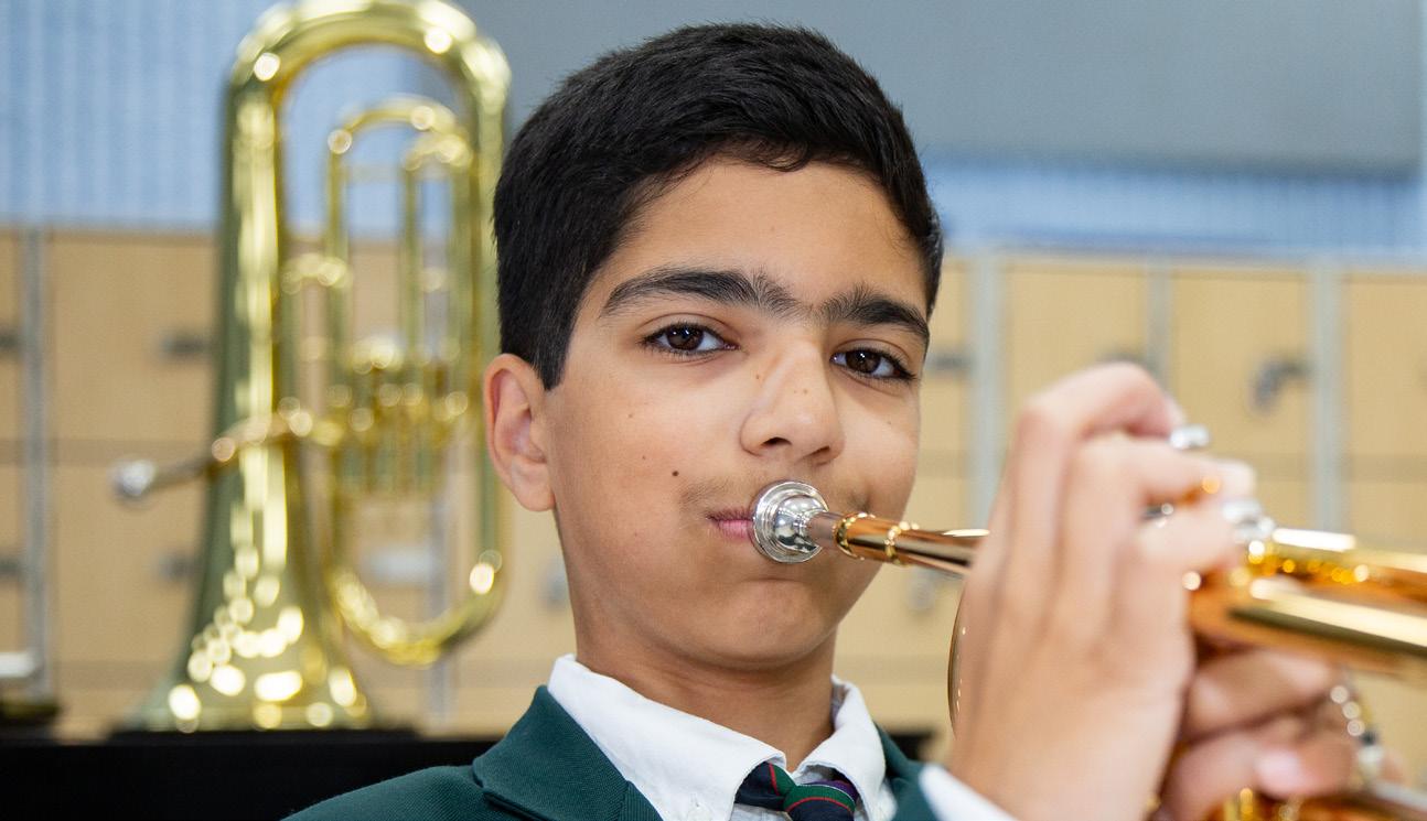 In addition to vocal practice opportunities in a choral ensemble setting, students begin formalized instruction on a band instrument.