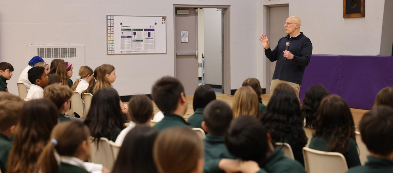 » Gordon Korman Visit: Bestselling Canadian author Gordon Korman inspired Middle School students with an in-person visit. He shared his writing journey and emphasized creativity and perseverance. Grade 5 got a novel preview just before starting their own Korman book study.