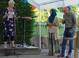 Tijdens de feestelijkheden werd ook het glas geheven op de oude en nieuwe voorzitter David en Saïda. Hier toegesproken door onze secretaris Marian van Beek.