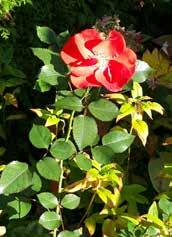 Siergras in Herfsttooi langs de openbare borders of een ‘last summerrose’ die zich koestert in de herfstzon. Het seizoen in voorbij.