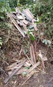 Ten overvloede nog even dit plaatje. Een “schenking” van een zeker tuinlid die denkt dat je alle soorten houtafval zomaar bij de takken kan dumpen.