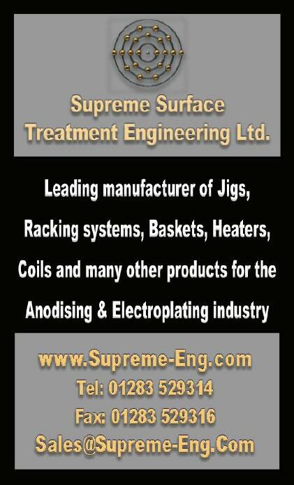 79 twitter: @surfaceworldmag MATERIAL & EQUIPMENT SUPPLIERS NOVEMBER 2022 AUTOMATIC & MANUAL METAL FINISHING PLANT & EQUIPMENT Fume Extraction Plastratum Ltd 100 Armoury Road Birmingham B11 2RH TEL: +44 (0) 121 314 1191 enquiries@plastratum.com www.plastratum.com Effluent Treatment DI Water Generation • PLANT CONTROL SYSTEMS • DATA MANAGEMENT SYSTEMS • BARRELS PROGALVANO ROTOR • BARREL AUTO LOADING SYSTEMS • PROGALVANO FILTERS • SEMI/AUTOMATIC FILTER SYSTEMS • CENTRIFUGAL DRYERS Large Range • AUTOMATIC DRYING SYSTEMS • ROTARY PAINTING/LAQUERING • TOP COATING/SEALING SYSTEMS • VIBRATORY POLISHING EQUIPMENT • LUBRICATION EQUIPMENT • RECTIFIERS Conventional & Pulse • A/HOUR METERS & DOSING PUMPS VAPOUR DEGREASING VIBRATORY DEBURRING, POLISHING & SURFACE FINISHING 4th & 5th October 2023 To find out more about Surface World please contact Nigel Bean on +44 (0) 1442 826826 or email nigelbean1@aol.co NEC, Birmingham VIBRATORY FINISHING EQUIPMENT & MATERIALS FOR ALL YOUR VIBRATORY FINISHING EQUIPMENT AND MATERIALS Sharmic Engineering Ltd Telephone: +44 (0)1299 822135 or +44 (0) 1299 878123/4/5 Email: info@sharmic.co.uk www.sharmic.co.uk SHARMIC FOR FAST, FRIENDLY SERVICE Experienced Engineers After sales technical support Nationwide deliveries To advertise in these pages under an existing or heading of your own choice please call Nigel on 01442 826826 or email nigelbean1@aol.com SURFACE FINISHING & EFFLUENT TECHNOLOGIES • Up to 50% energy savings • Compact size • Easy & safe to use • Works up to 350°C • Low exhaust emissions • High efficiency • Requires no specialist knowledge • Corrosion free operation • No chemical treatment Thermal Fluid Heating Technology now for the future Tel: 020 8953 7111 info@babcock-wanson.com www.babcock-wanson.com THERMAL FLUID Thermal Insulation Spheres Frogspawn™ by Manufacturing in the UK since 1957 braude.co.uk THERMAL INSULATION ��>������>������>����>����>�����>���>�������>���������������>����������>���>��� >>>�������>������� > �����>�>����� >>>�������>����������>������� >> ������>��������>��������� >>>��������>�������>����������> >>>>������>�>�����������> ����������>������>�>��������������� ���>��>���>�������>���>���������>��>��� >��>���>�������>������������>������� >>>>>>�����>�������������>��>����>�����>��> > >��������>������� > ����������> >>>�����>������>����>�����>������ ��>���>����>�����>���������>�����������>���>�������>��>���������>�����>��> �����>������������>�������>���>��������>��>����������>���>����������>�������> ����������>���>���> WATER PURIFICATION