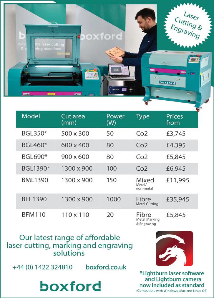 87 TROPHY & ENGRAVING NEWS EUROPEAN BUYERS GUIDE 2023 Armstrong Products Armstrong Products ENGRAVING PLATE AND TROPHY CENTRE SPECIALISTS RECORD SHIELDS DIAMOND CUT DISCS SCREEN PRINTED PLAQUES INDUSTRIAL NAMEPLATES METAL SHEETS STICKERS Tel: 01484 516040 Fax: 01484 519378 sales@armstrongproducts.co.uk www.armstrongproducts.co.uk TROPHIES, AWARDS & MEDALS ENGRAVING U-MARQ the leading UK engraving machine and accessory manufacturer Supplies 4 Green End Road, Great Barford, Bedfordshire MK44 3HA www.u-marq.com +44(0)1908 623522 sales@u-marq.com Follow - @U_MARQ Follow - umarqltd -U-MARQ ENGRAVING Call01912960363 CAServicing VirtuallyallMakes&Models On-SiteorBacktoBase FullNationalCoverage ReconditionedMachines Service,Repairs&Accessories FormostMakes&Modelsof ComputerisedEngravingMachines &Lasers ColinArcherhasworkedintheEngravingIndustry asaServiceEngineerforover TwentyFiveYearsnow. In2005hesetupCAServicingwiththeaimto provideprofessionalServicing& RepairsofComputerisedEngravingMachines&Lasers atSensiblePrices. CAServicing Unit5HelmsmanHouse,NorhamRoad NorthShields,NE298RZ Tel:-01912960363 Mobile:-07436261990 www.caservicing.co.uk E-Mail:-sales@caservicing.co.uk ›› RDWorks or Lightburn Software ›› Slatted Machine Bed (Non-Reflective) ›› Free 60W Laser Tube Upgrade ›› Installation and Training ›› Free UK delivery up to 250 miles ›› Lifetime Technical Support ›› 3 Year Onsite Warranty ›› Finance Options Available ›› 2 Free Onsite Services LS6840 PRO 60W £6,995 + VAT BOFA Extraction Unit Industrial Chiller Unit HPC Laser Ltd Castle Mills, Saddleworth Road, Halifax, HX5 0RY T: 01422 310800 E: sales@hpclaser.co.uk W: www.hpclaser.co.uk LS6840 PRO Package Offer! Laser Engraving and Cutting Machine We’re pleased to announce this starter package offer, including all the equipment needed to get you started, and more! HPC A4 Advert April 21 v3.indd 08/04/2021 08:08
