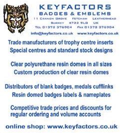 MANUFACTURER • SUPPLIER • WHOLESALER Trophies, Medals, Cups, Emblems, Glass Awards, Gift Articles, Resin Figures, Pewter, Plaques, Custom Manufacturing . . . STIEBER GMBH & CO. KG CONTACT Hofstatt 12 • 36282 Hauneck • Germany info@stieber-vereinsbedarf.de Sportprizes & Gift Articles Custom Manufacturing In-house Production More than 460 custom aluminium-emblems Global Delivery www.stieber-vereinsbedarf.info The Magazine for the Trophy, Engraving, Awards, Medals, Key Cutting, Gifts, and Personalisation Industry EUROPEAN BUYERS GUIDE 2023