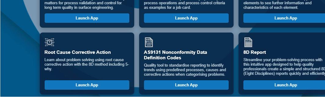 For those focused on quality, the Web Apps include comprehensive resources for Root Cause Corrective Action and 8D problem-solving, structured to align with standard frameworks. Additional tools cover subjects such as paint adhesion, rinsing effectiveness, cleaning verification and special process validation—making them invaluable reference points for both experienced professionals and trainees alike.