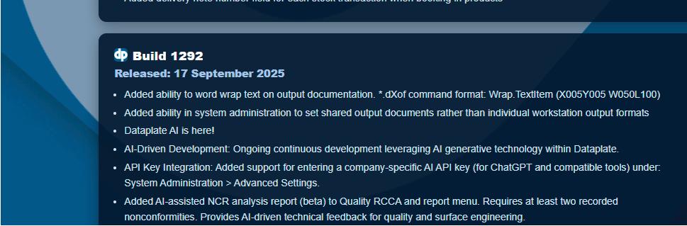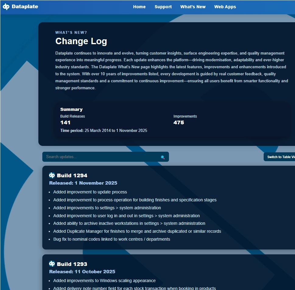 Dataplate continues to evolve through customer feedback and industry experience. Every update strengthens its
