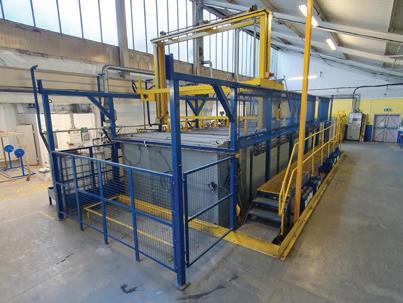 A 13 stage ‘H’ style multi dip tank pre-treatment plant with load and unload stations, 10 x 3.9 m3 stainless steel liquid tanks, inline gas oven, speed regulated transporter, and newly upgraded Siemens S7 control system. Comes complete with 6 x flight-bars, component baskets and load cradles.