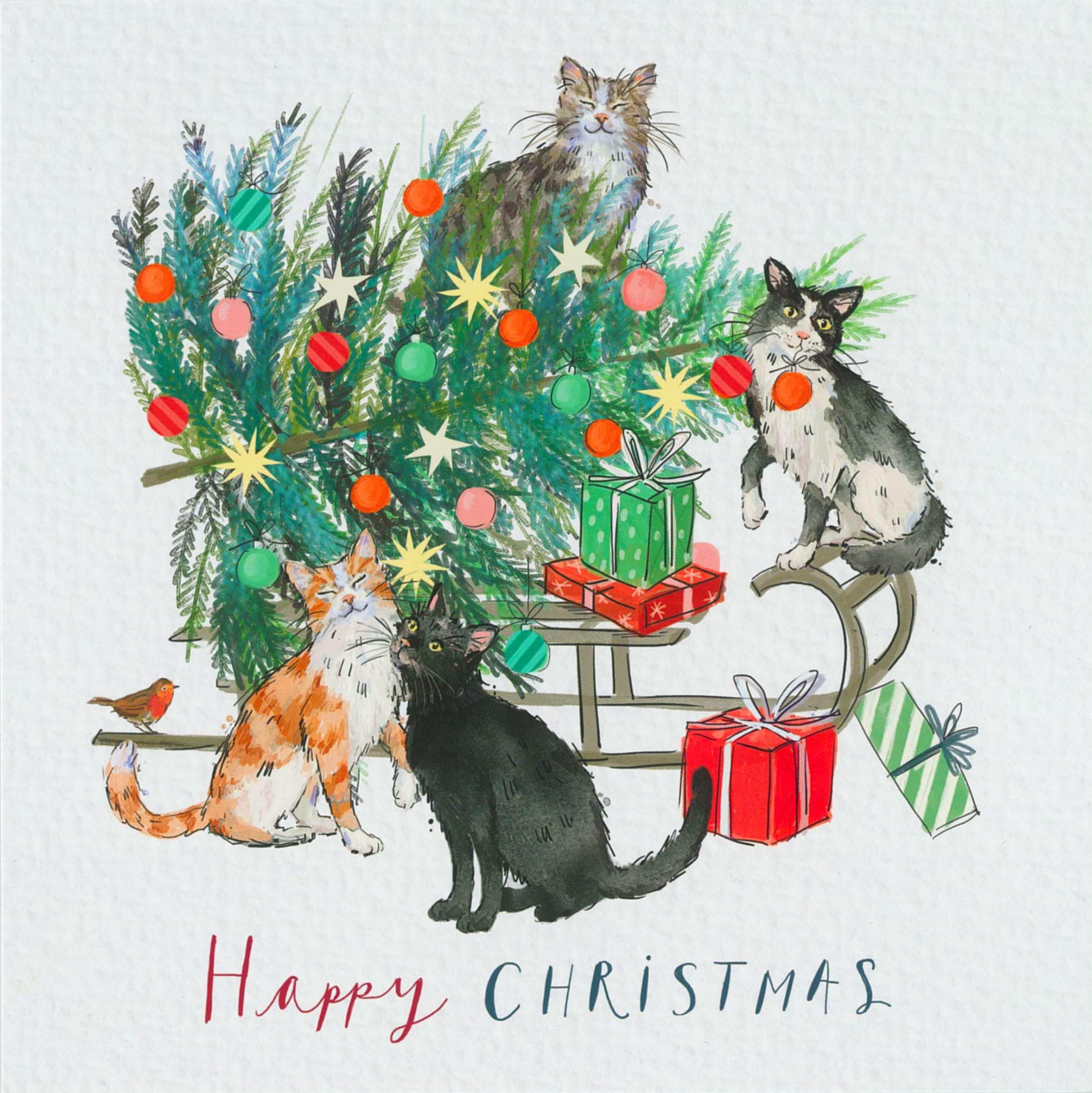 ‘Moggie Mischief’ Festive Cards Pack of 10 in 2 designs shown (5"x5")