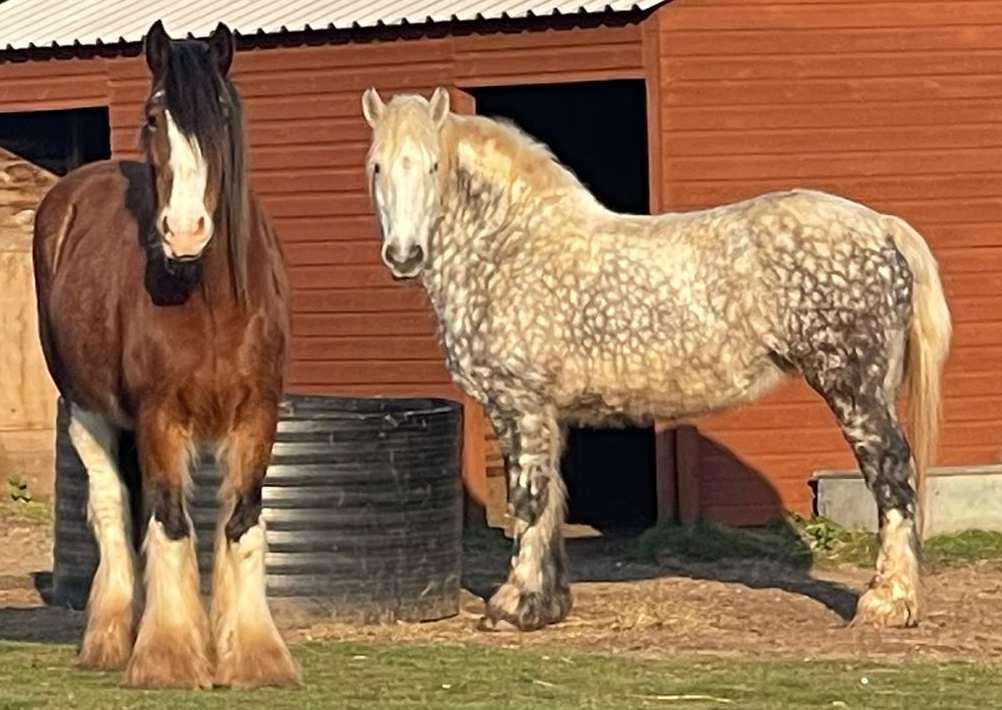 This is Ellie with Suffolk Punch, Ginny and Jim the Clydesdale.