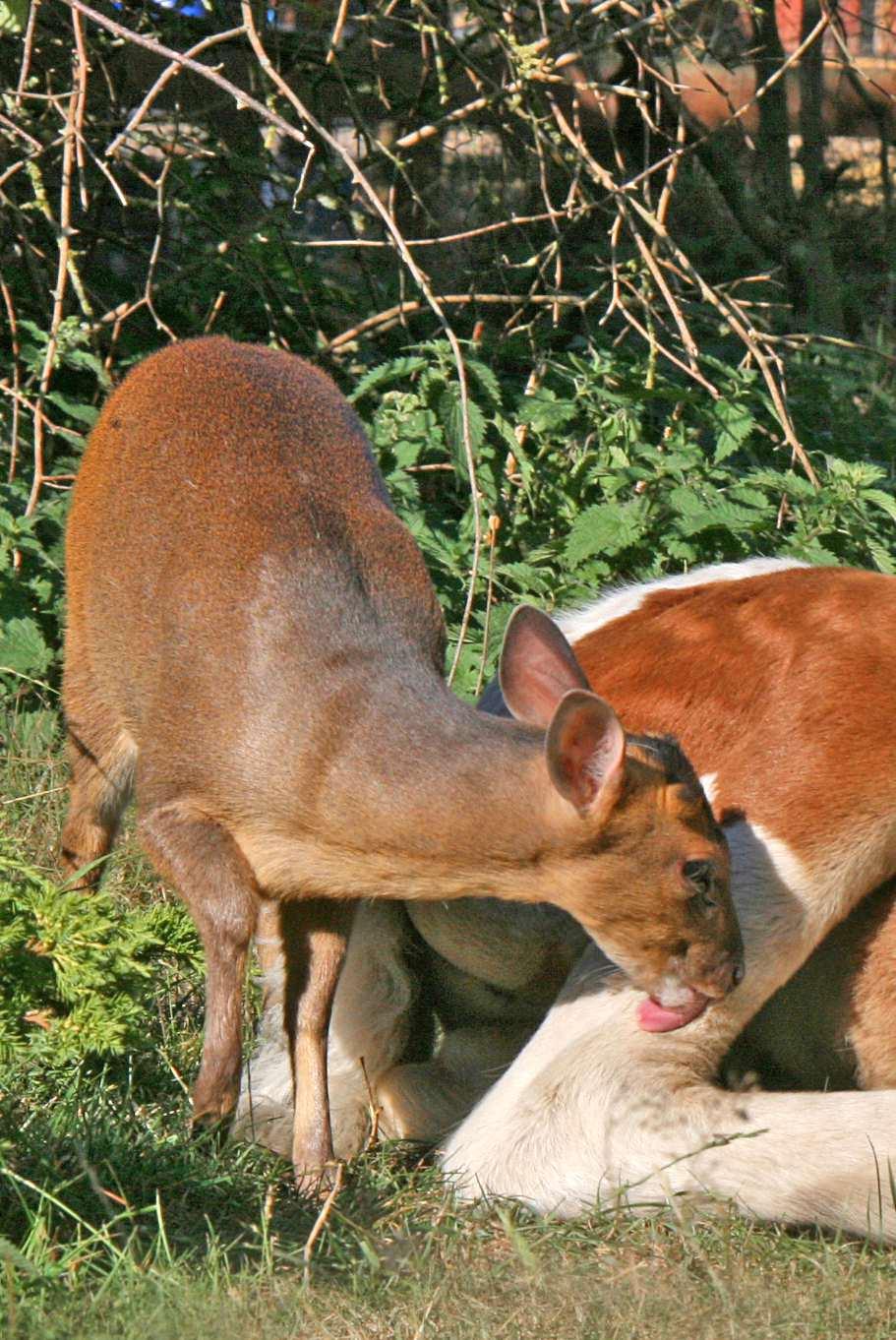 in 2013 after being abandoned all alone just a week old. We brought him back and, egular bottle-feeding, he lived close by in the inseparable friends with Brian the deer.