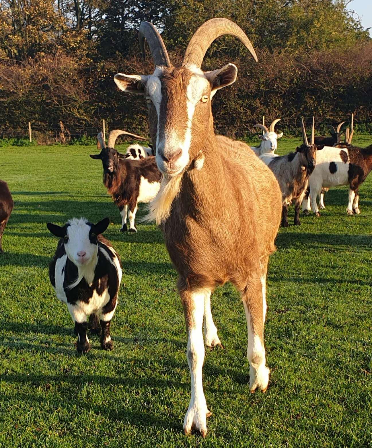 Little and large - our smallest goat Daisy and our tallest Gizmo.