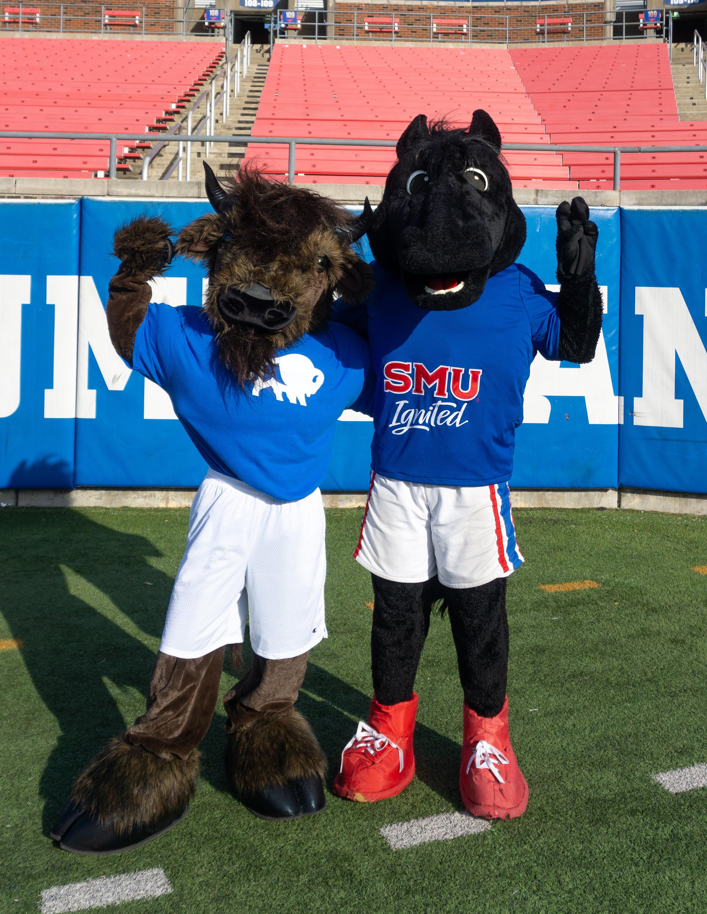 Hilltop’s “costume mascot” Mo has been worn by many over the past several decades. Spirited employees have volunteered to proudly represent Mo at company events, baseball games, open houses, and more. Last month, costume mascot Mo teamed up with Peruna, the mascot of the Southern Methodist University Mustangs, as part of Hilltop’s 2021-2023 sponsorship with SMU Athletics. Together, Mo and Peruna represent two institutions with deep Texas roots. Be on the lookout for the Hilltop family of companies at SMU athletic events this Fall!