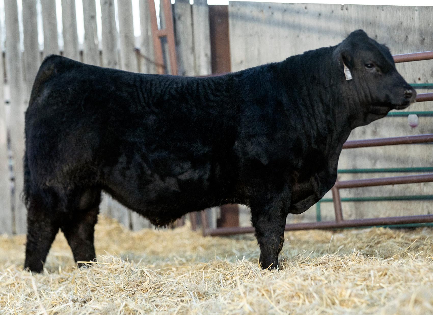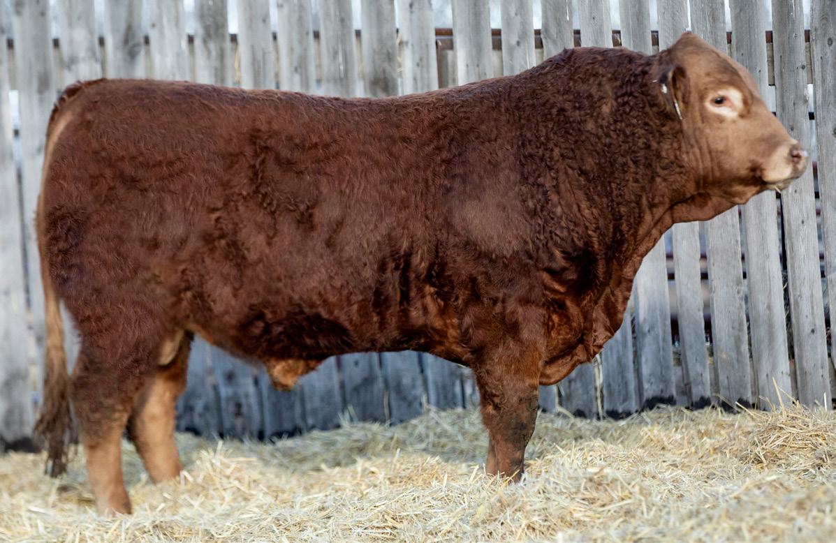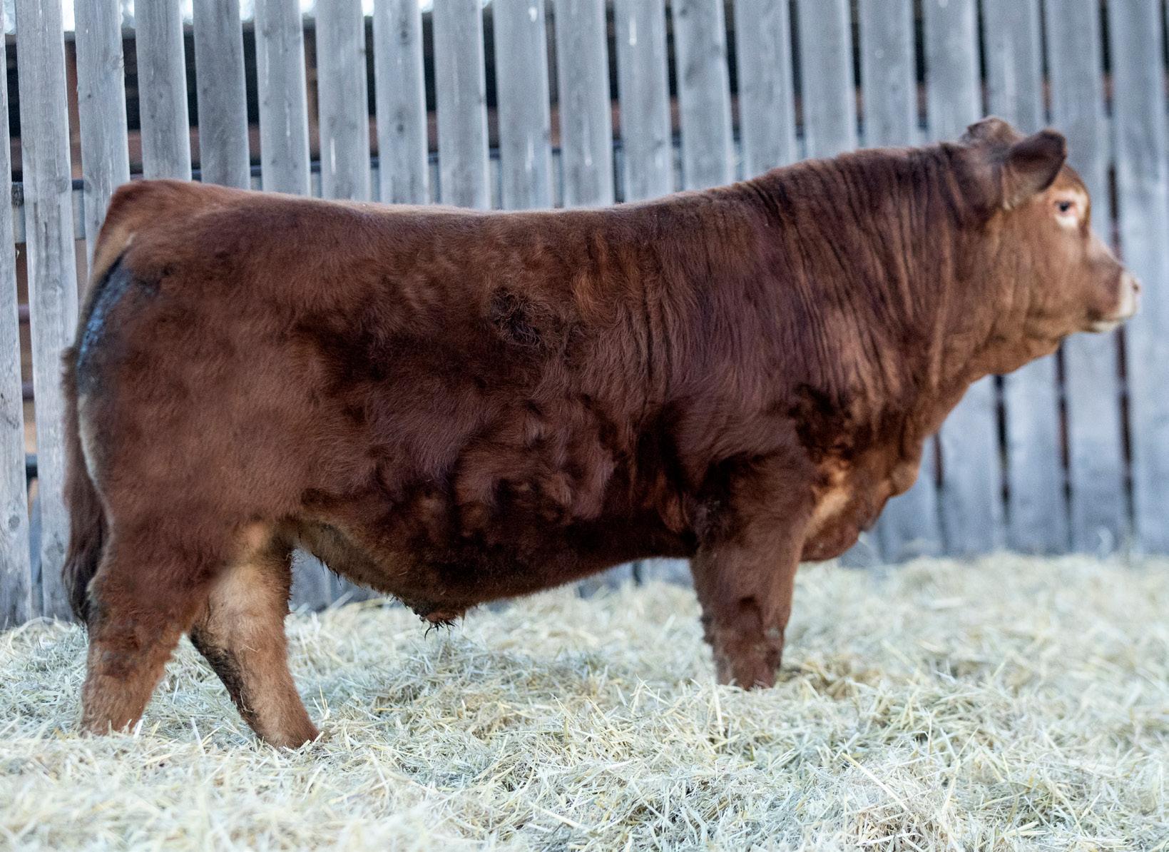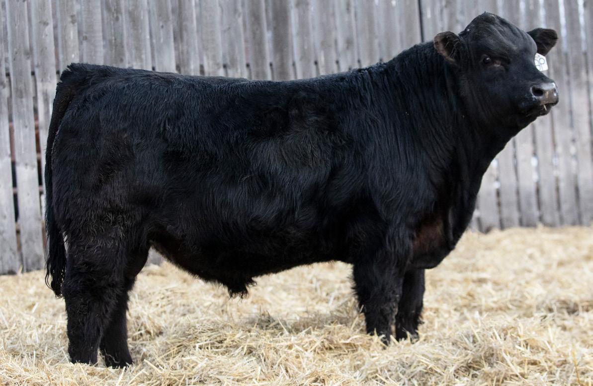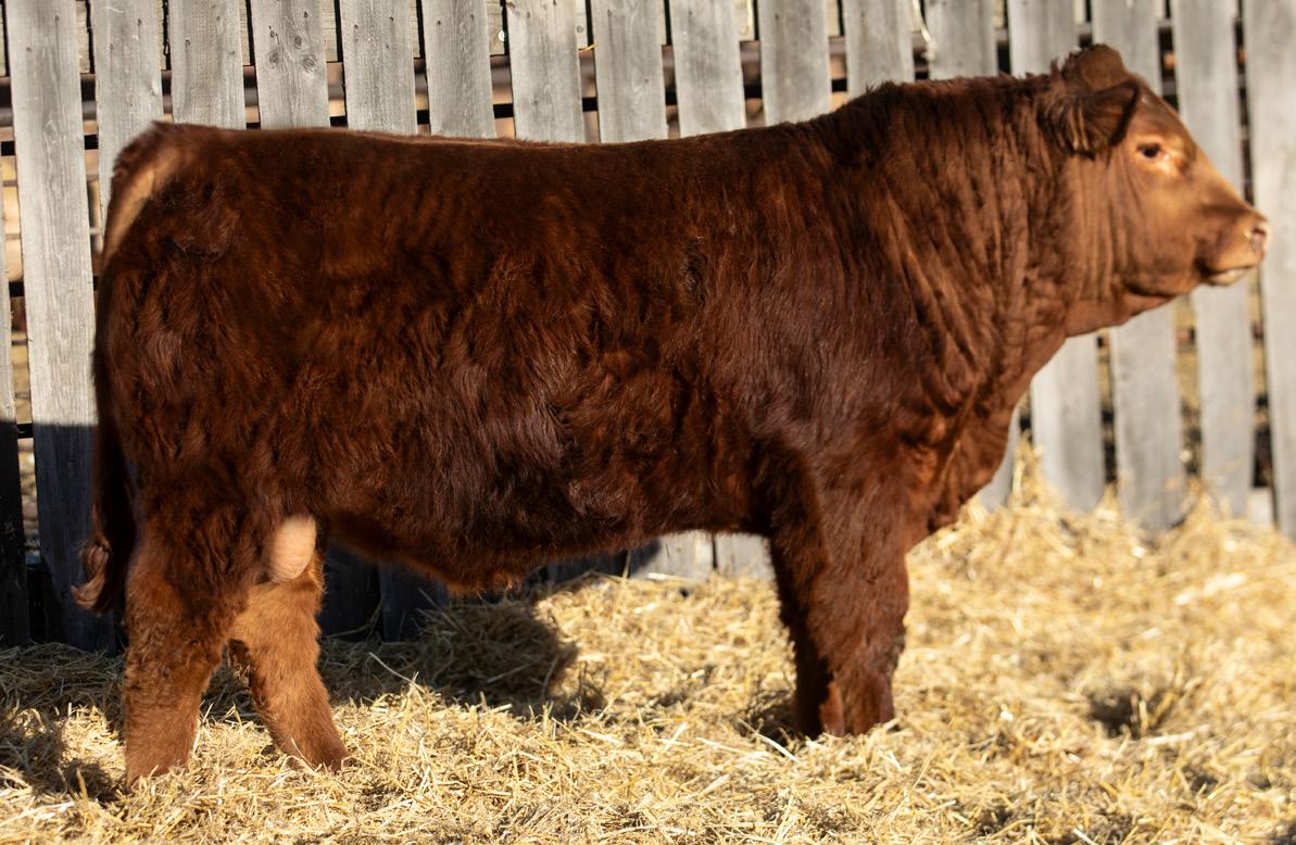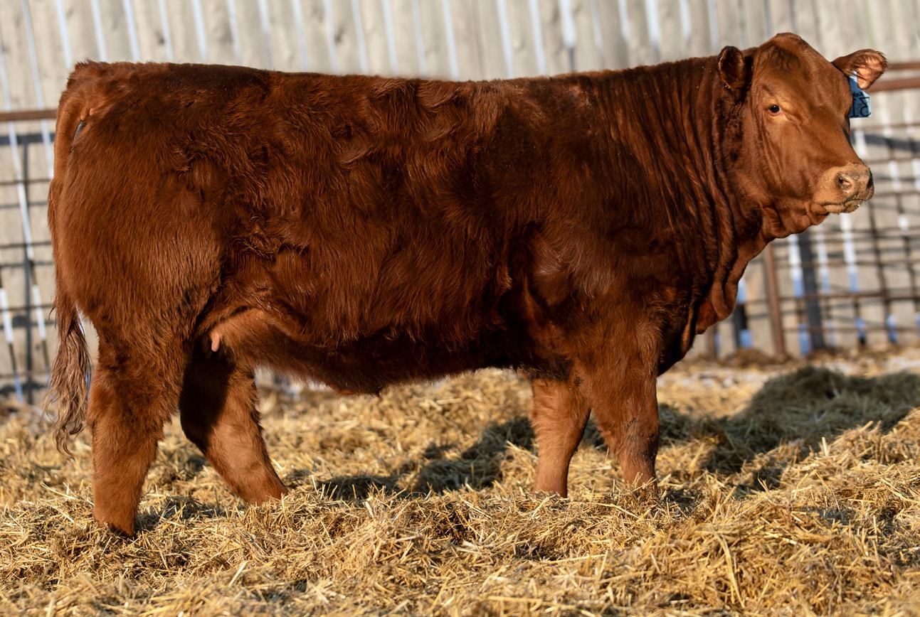 Heifer Bull Option Extremely impressive. Extra thickness throughout, deep bodied and big topped in a clean, correct and balanced package. Good attitude and comes out of a highly productive 10 year old cow with 3 daughters in our herd. Will give you calves you are proud of. Maternal brother sold to Morsan Farms Ltd. Maternal brother sells as Lot 36