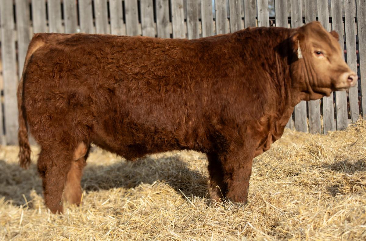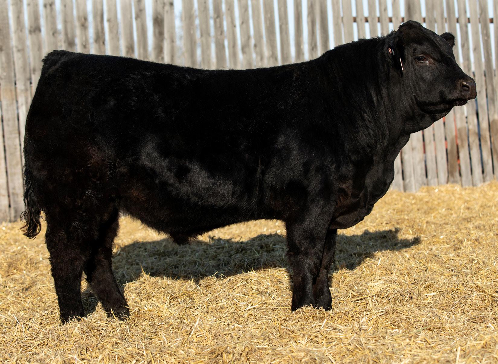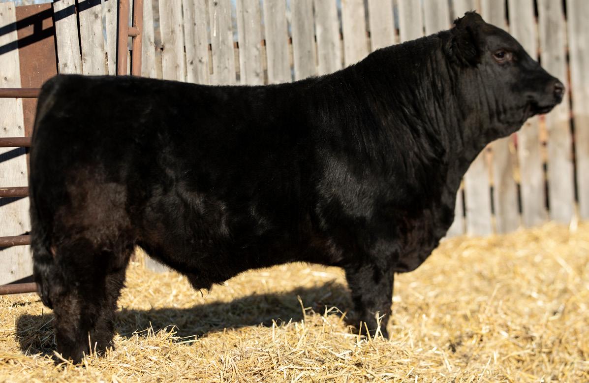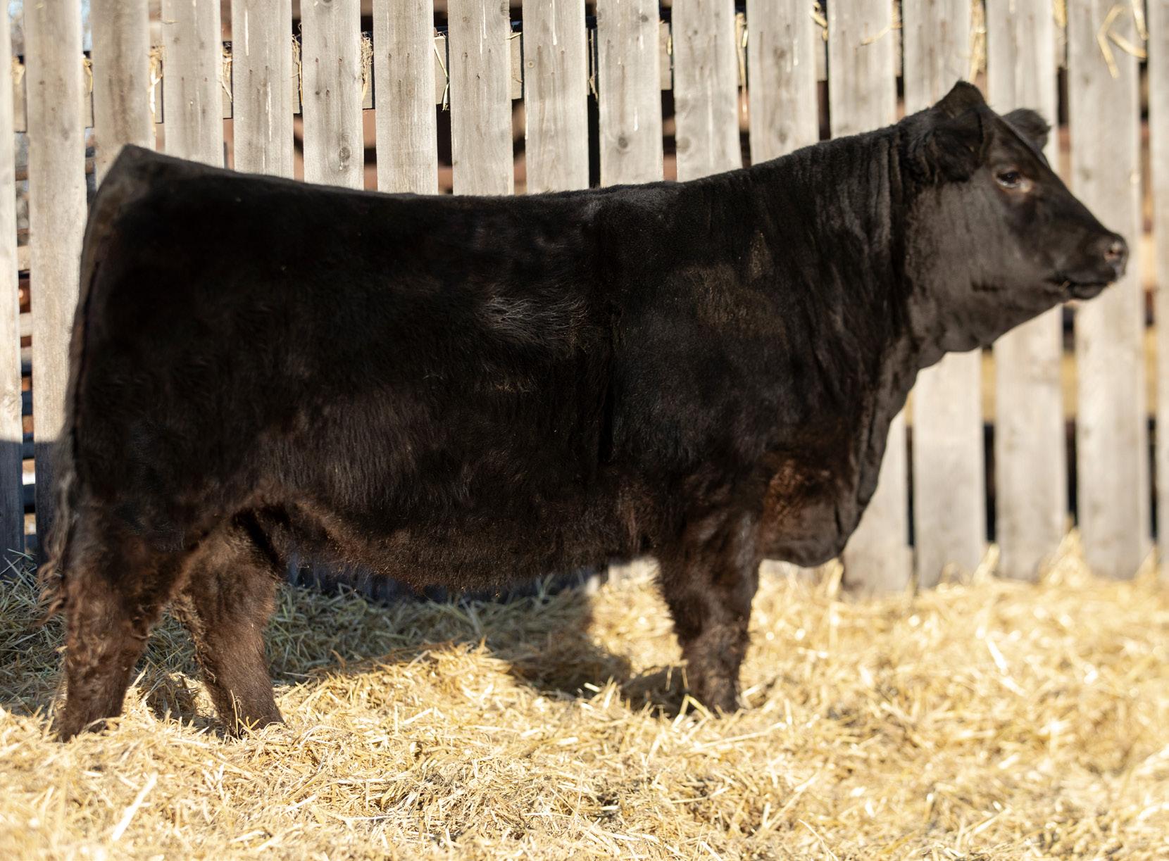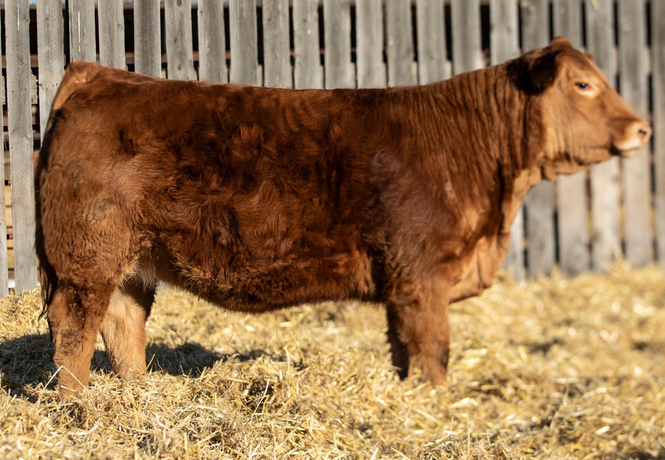 Heifer Bull Option Extremely impressive. Extra thickness throughout, deep bodied and big topped in a clean, correct and balanced package. Good attitude and comes out of a highly productive 10 year old cow with 3 daughters in our herd. Will give you calves you are proud of. Maternal brother sold to Morsan Farms Ltd. Maternal brother sells as Lot 36