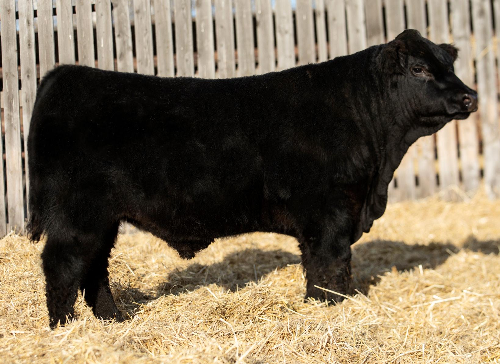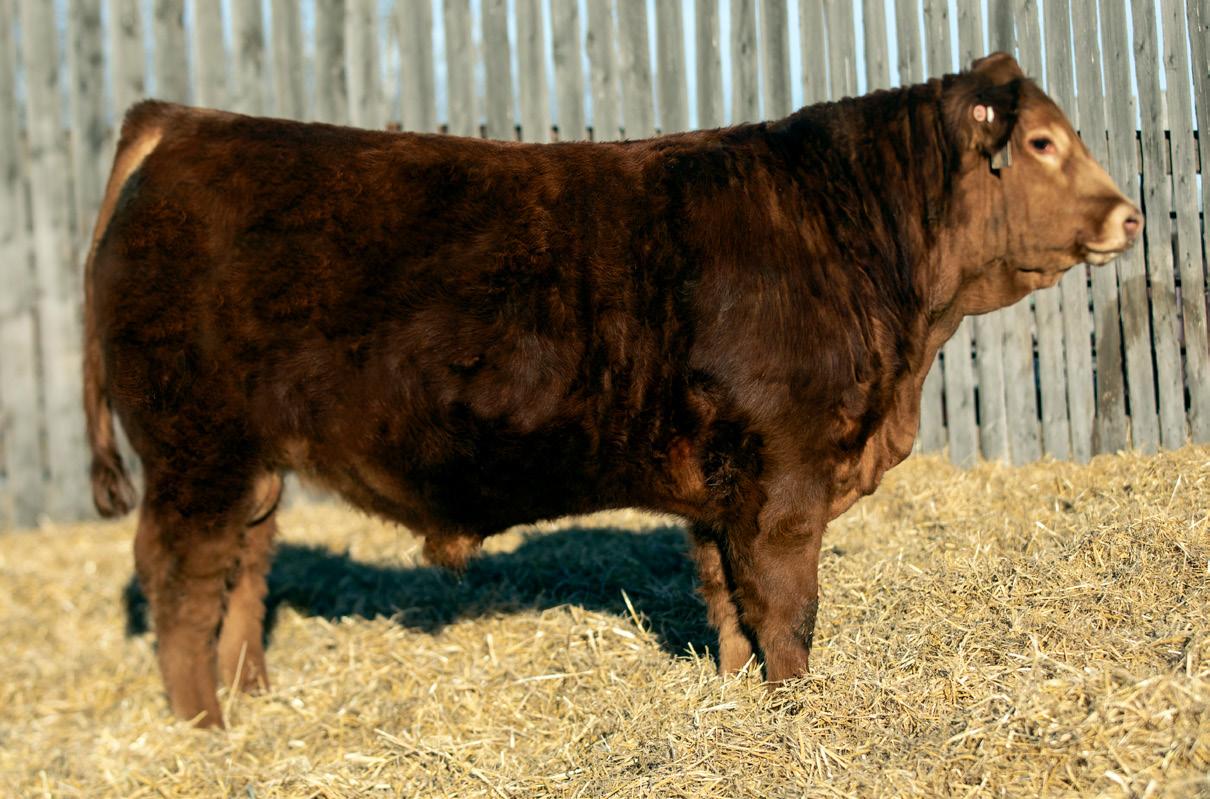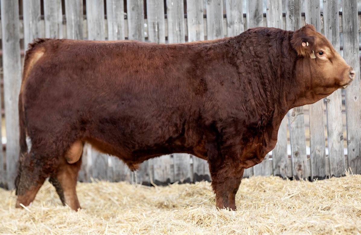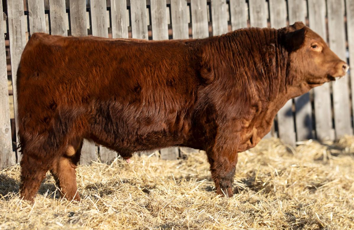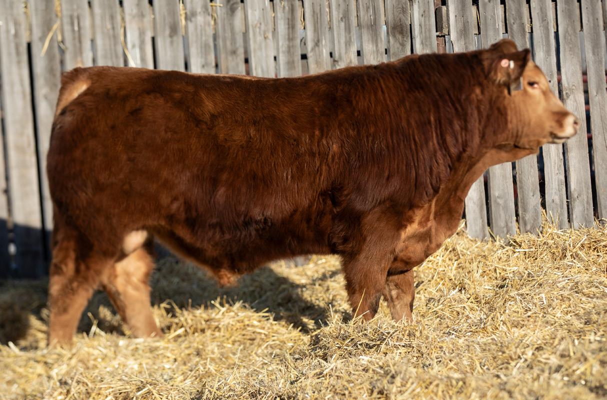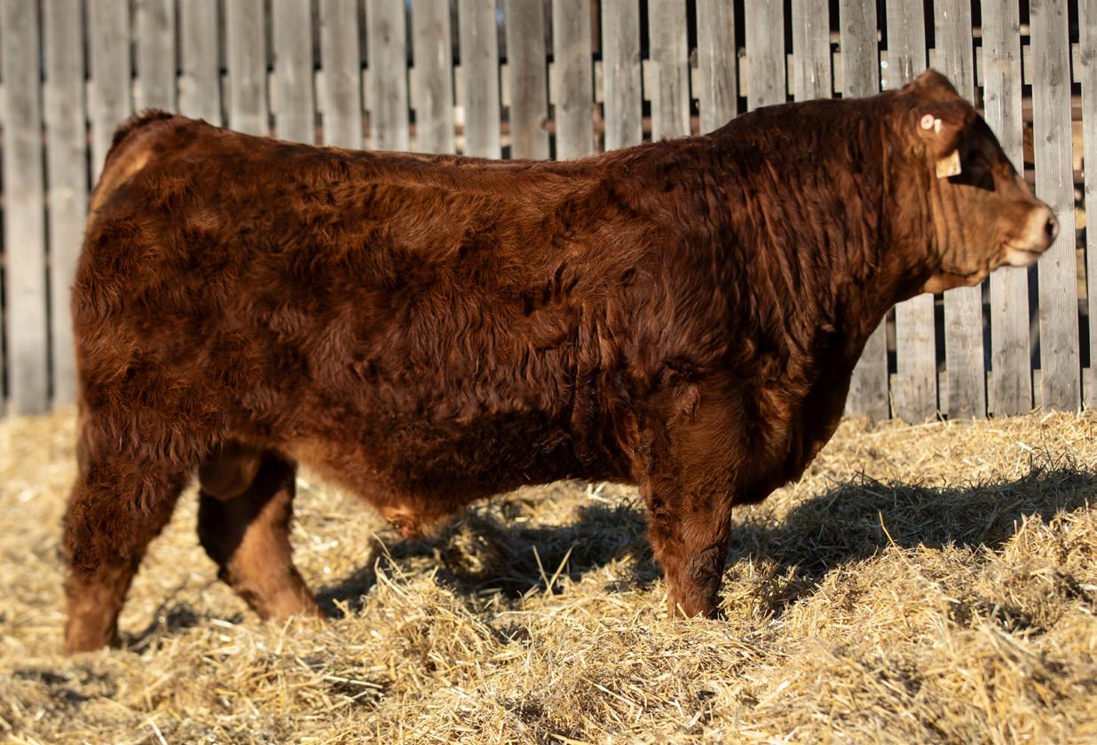Heifer Bull Option Extremely impressive. Extra thickness throughout, deep bodied and big topped in a clean, correct and balanced package. Good attitude and comes out of a highly productive 10 year old cow with 3 daughters in our herd. Will give you calves you are proud of. Maternal brother sold to Morsan Farms Ltd. Maternal brother sells as Lot 36