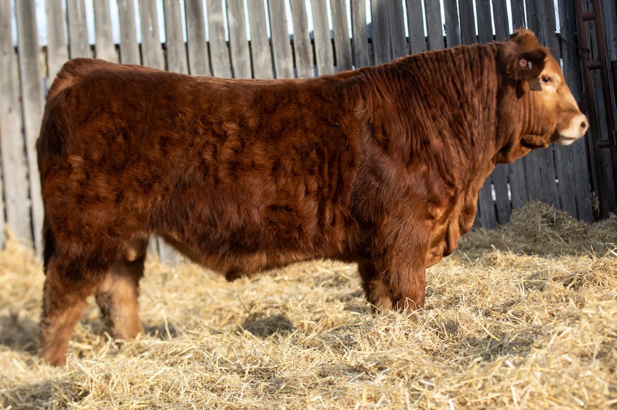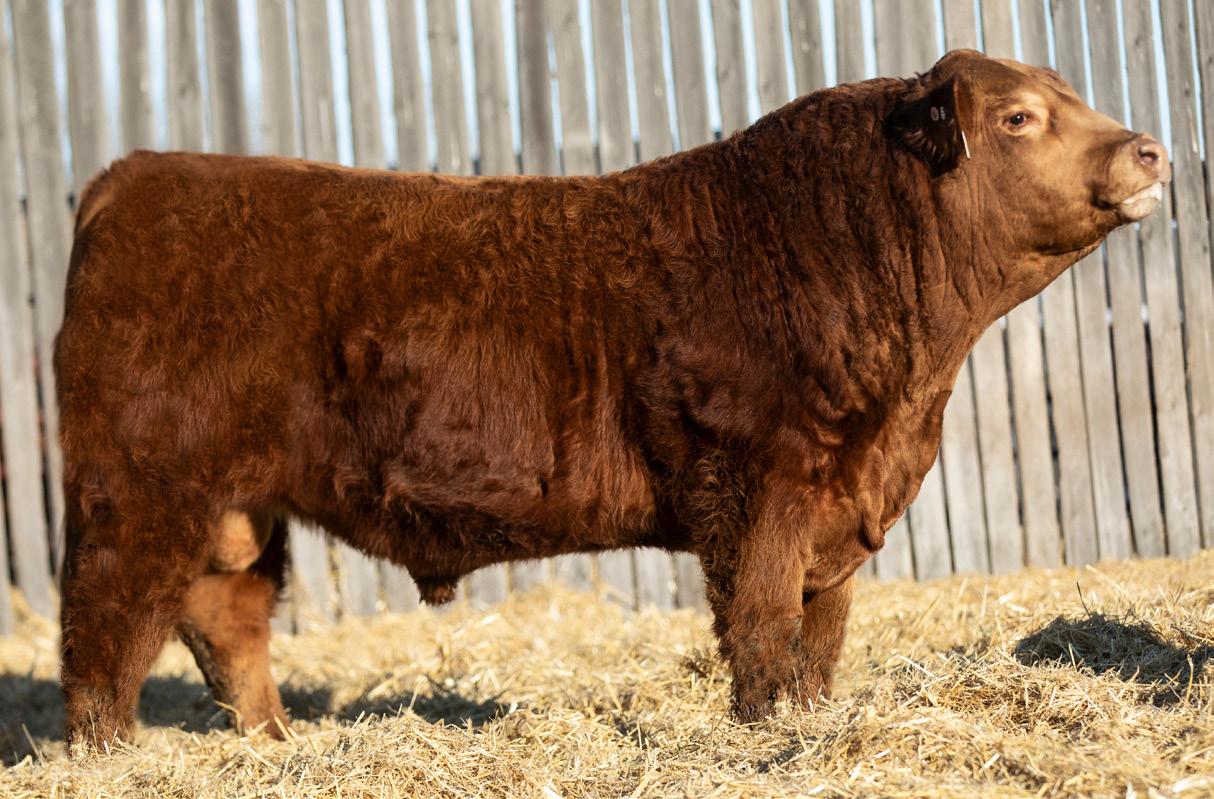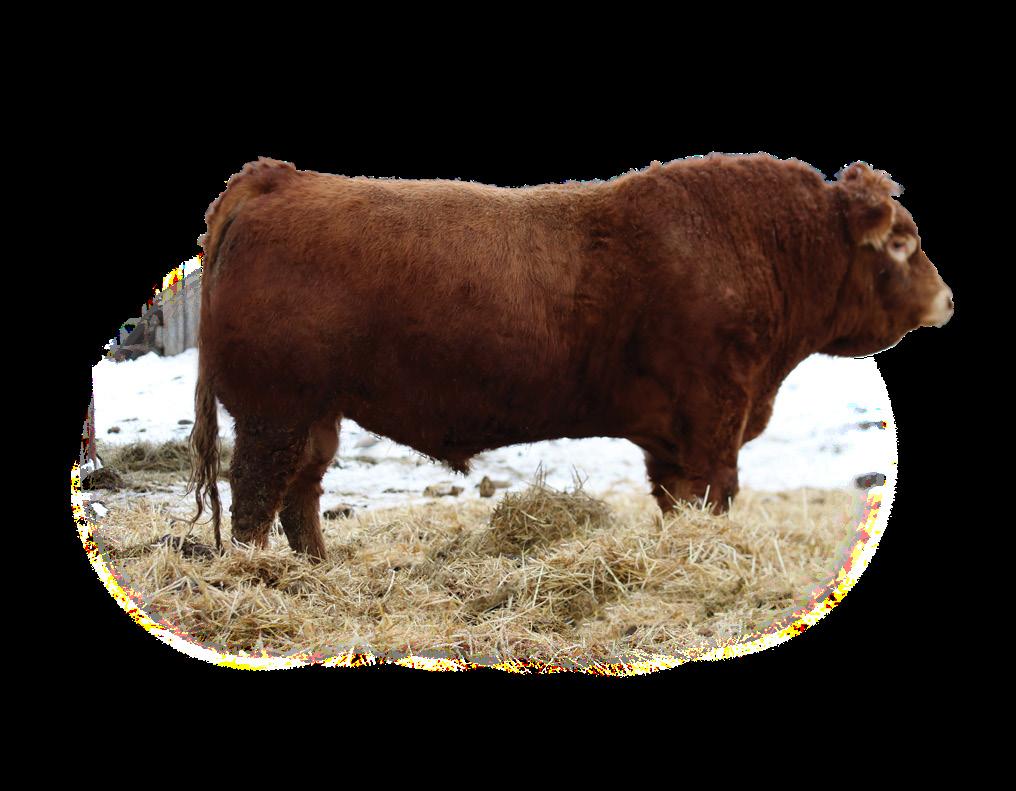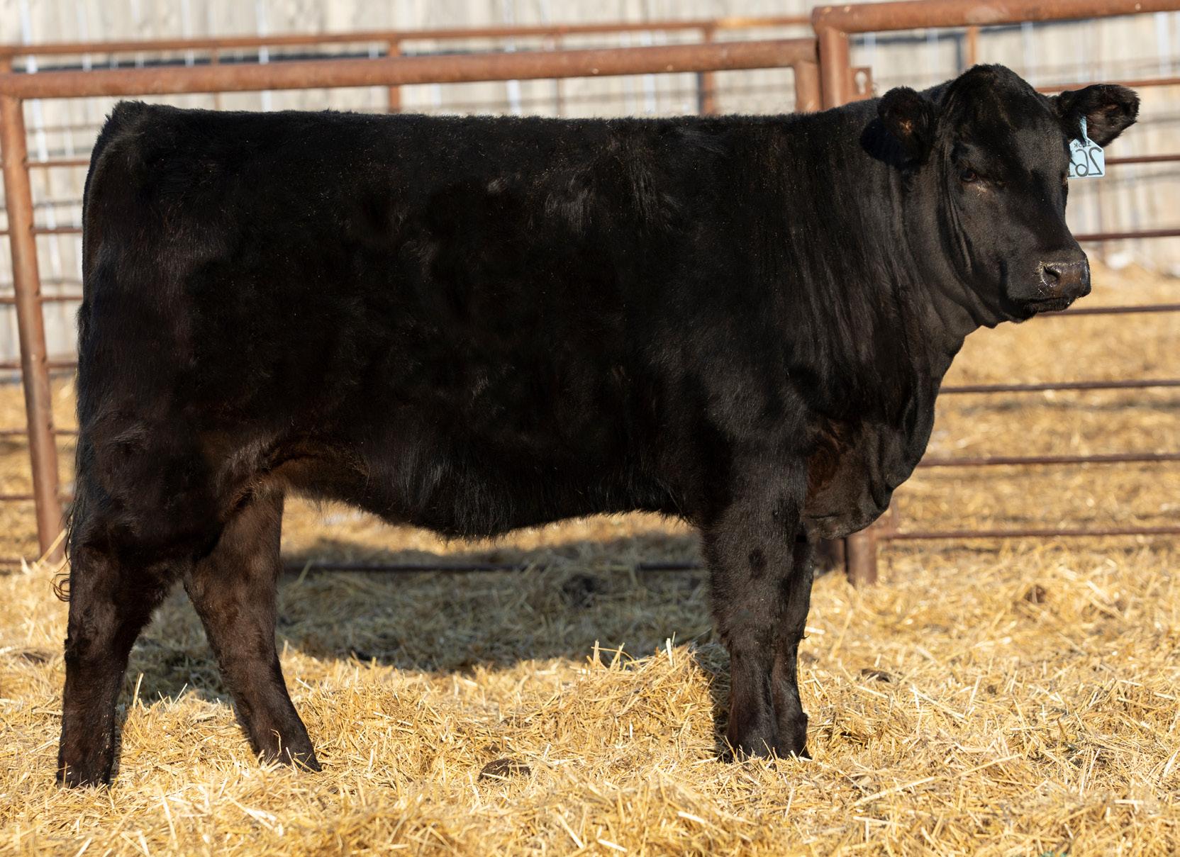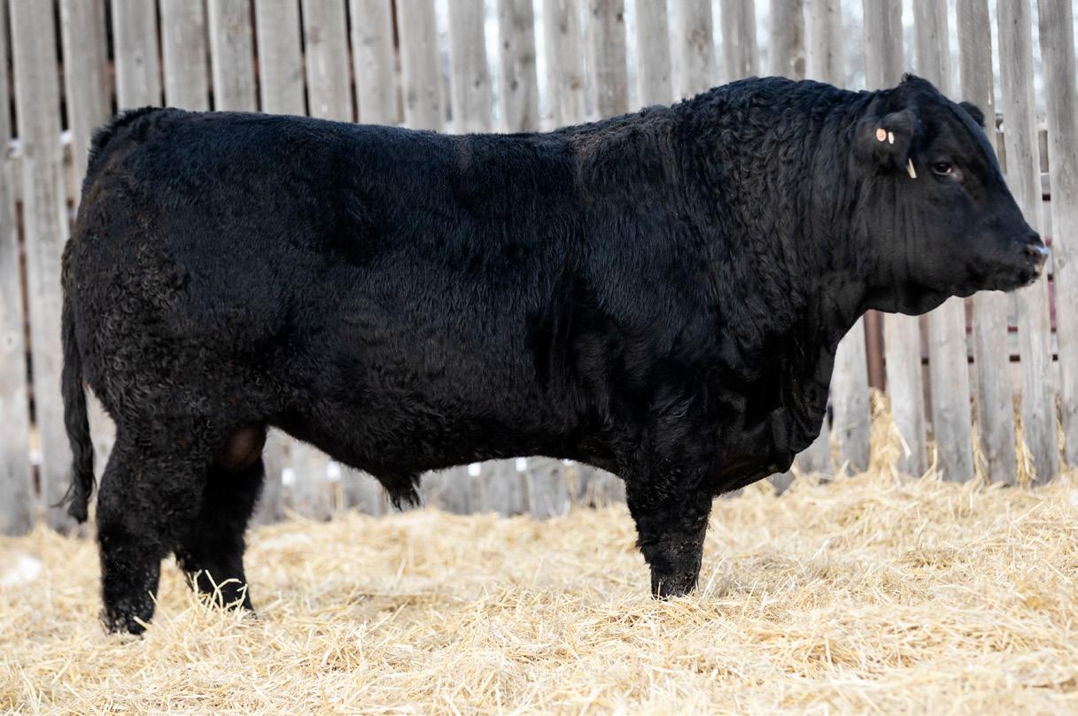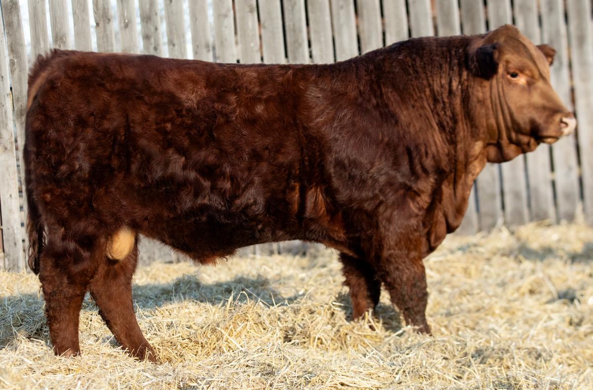 Heifer Bull Option Extremely impressive. Extra thickness throughout, deep bodied and big topped in a clean, correct and balanced package. Good attitude and comes out of a highly productive 10 year old cow with 3 daughters in our herd. Will give you calves you are proud of. Maternal brother sold to Morsan Farms Ltd. Maternal brother sells as Lot 36