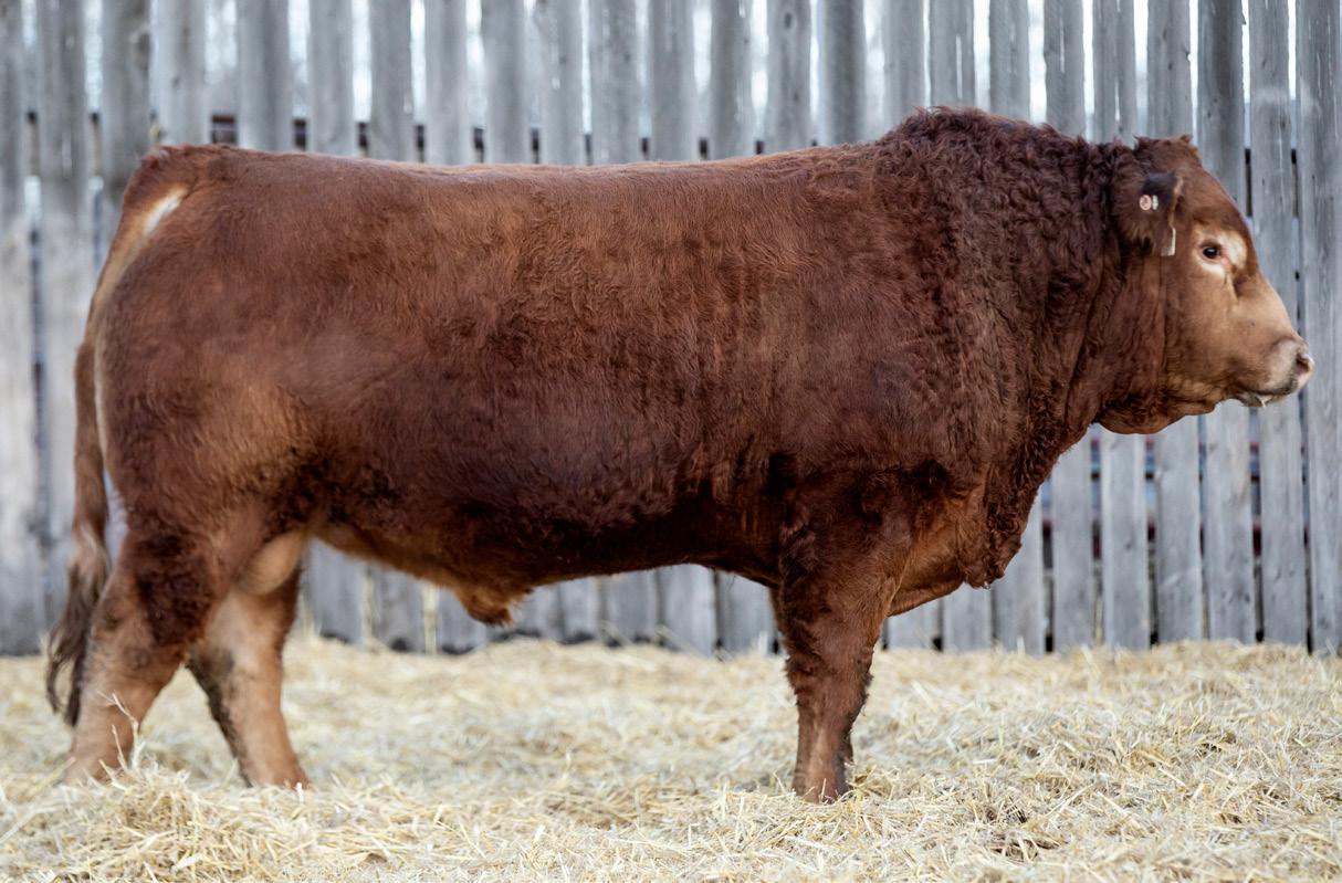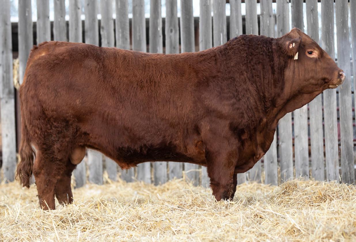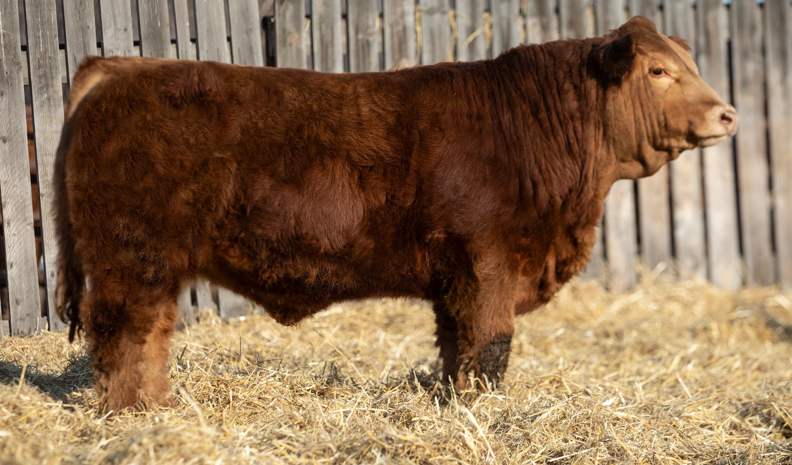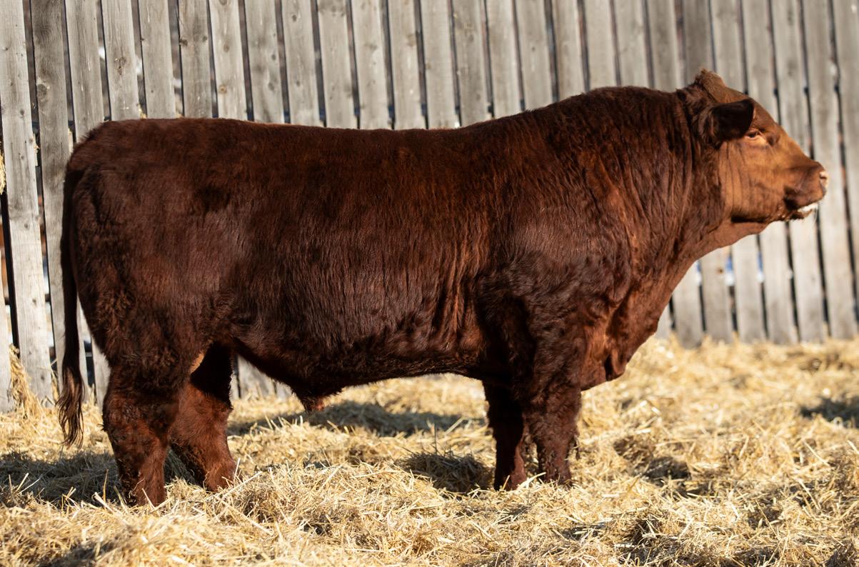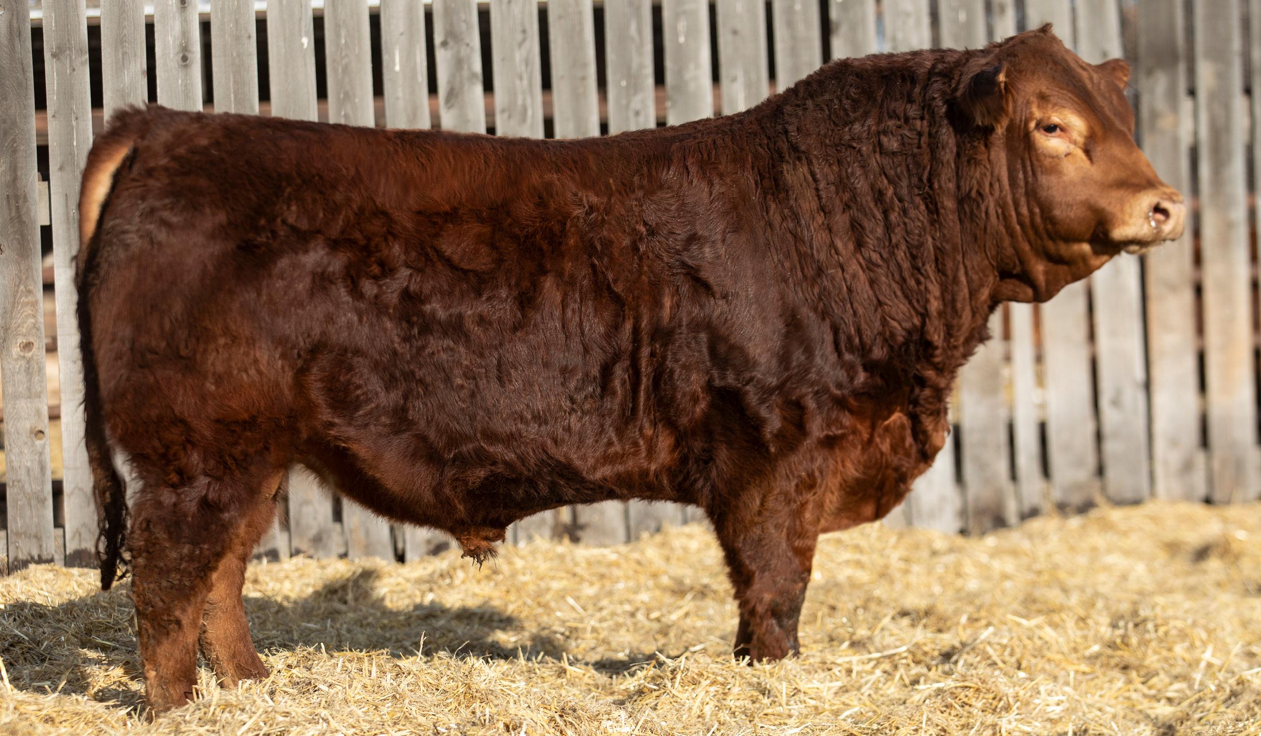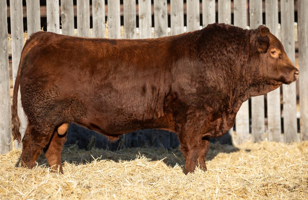 Heifer Bull Option Extremely impressive. Extra thickness throughout, deep bodied and big topped in a clean, correct and balanced package. Good attitude and comes out of a highly productive 10 year old cow with 3 daughters in our herd. Will give you calves you are proud of. Maternal brother sold to Morsan Farms Ltd. Maternal brother sells as Lot 36