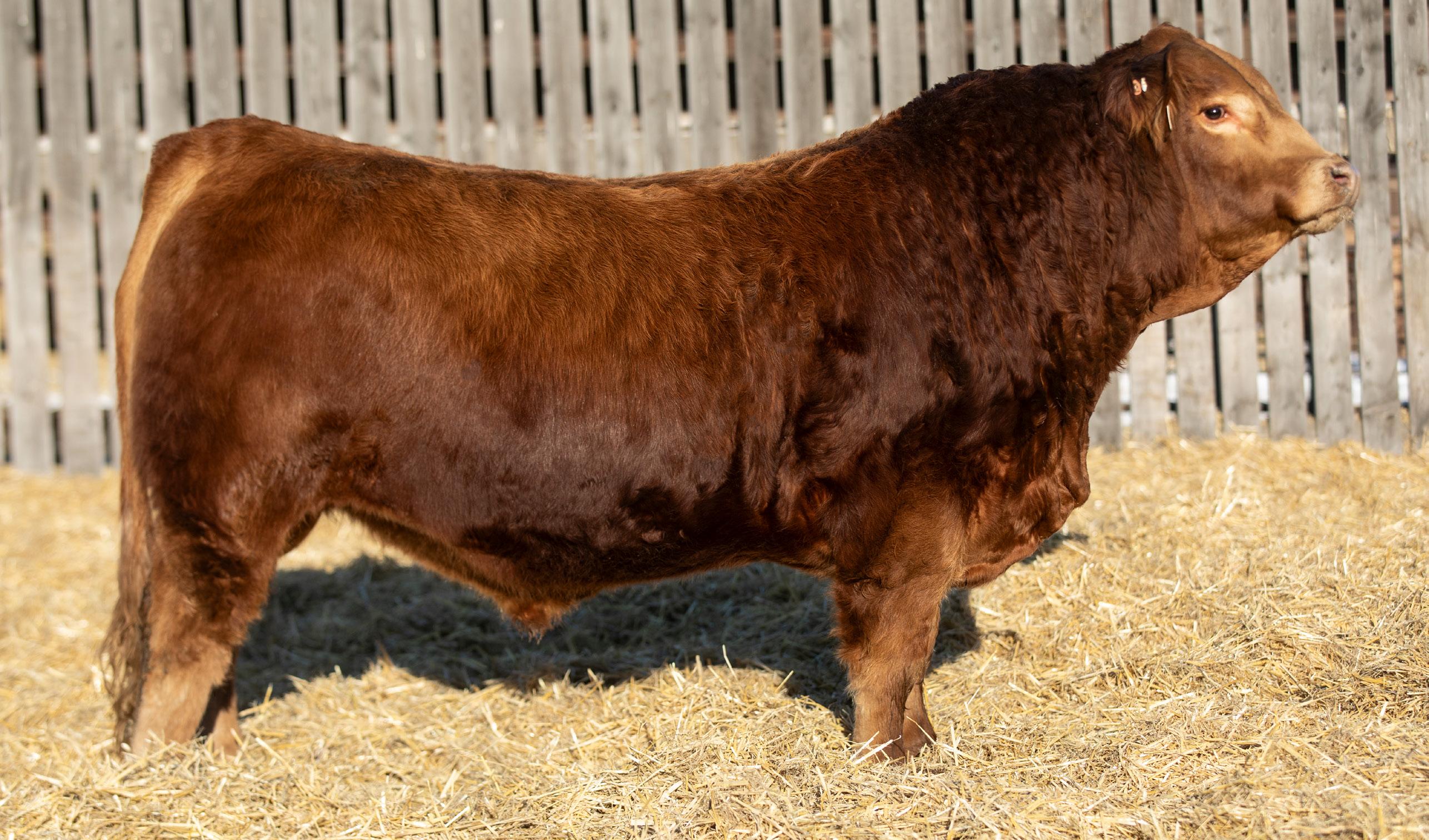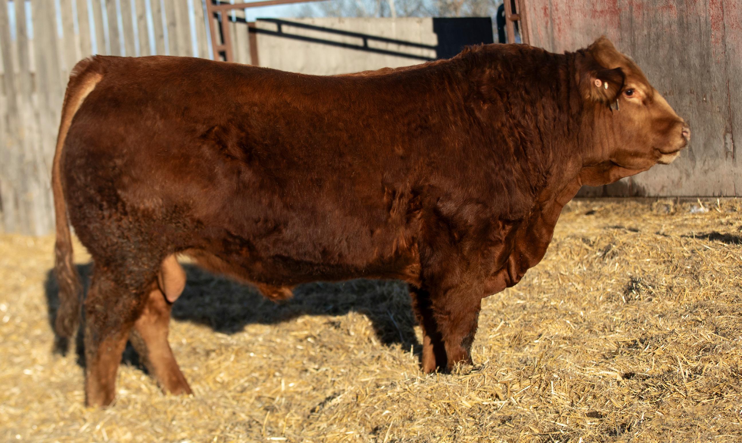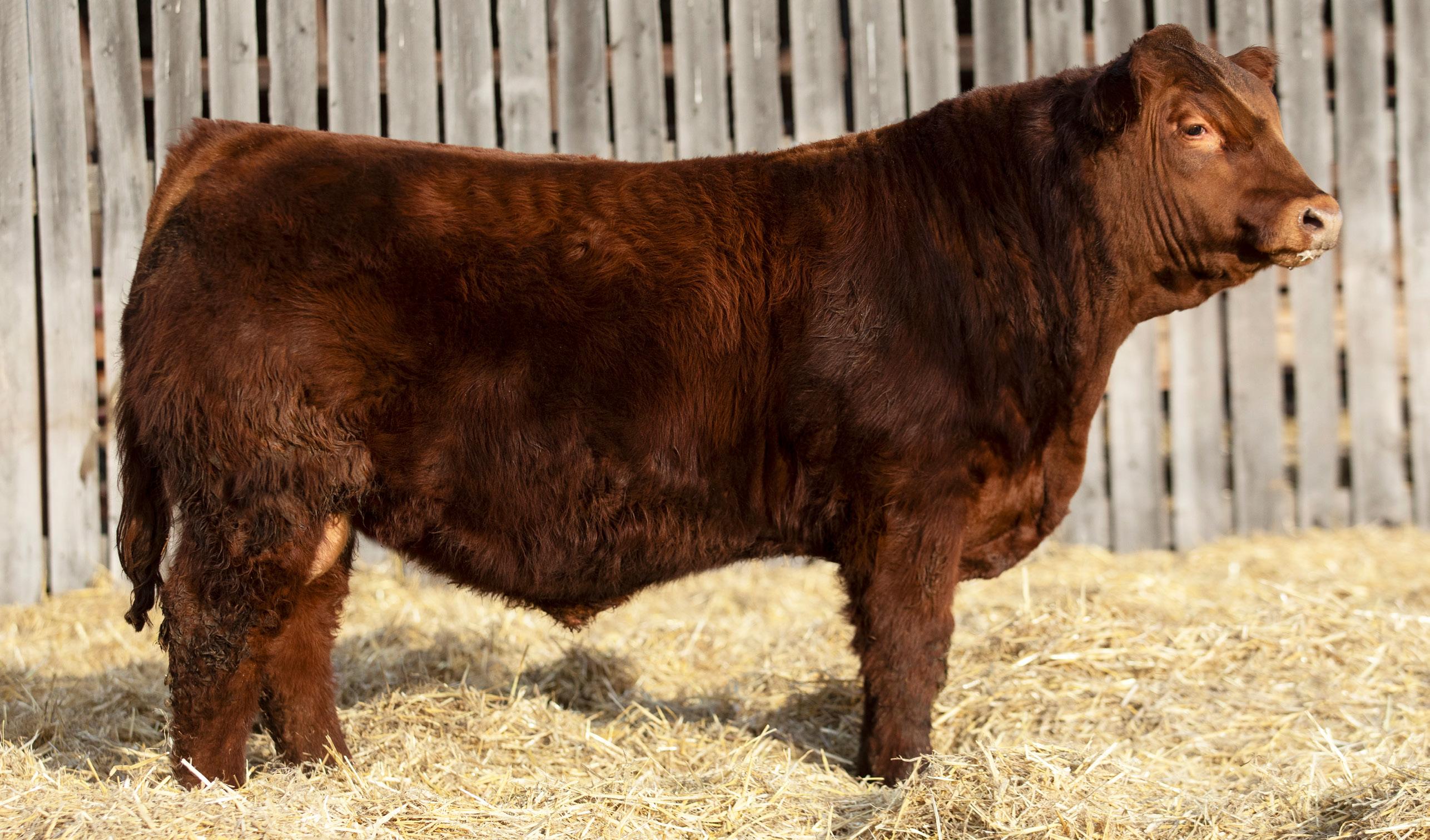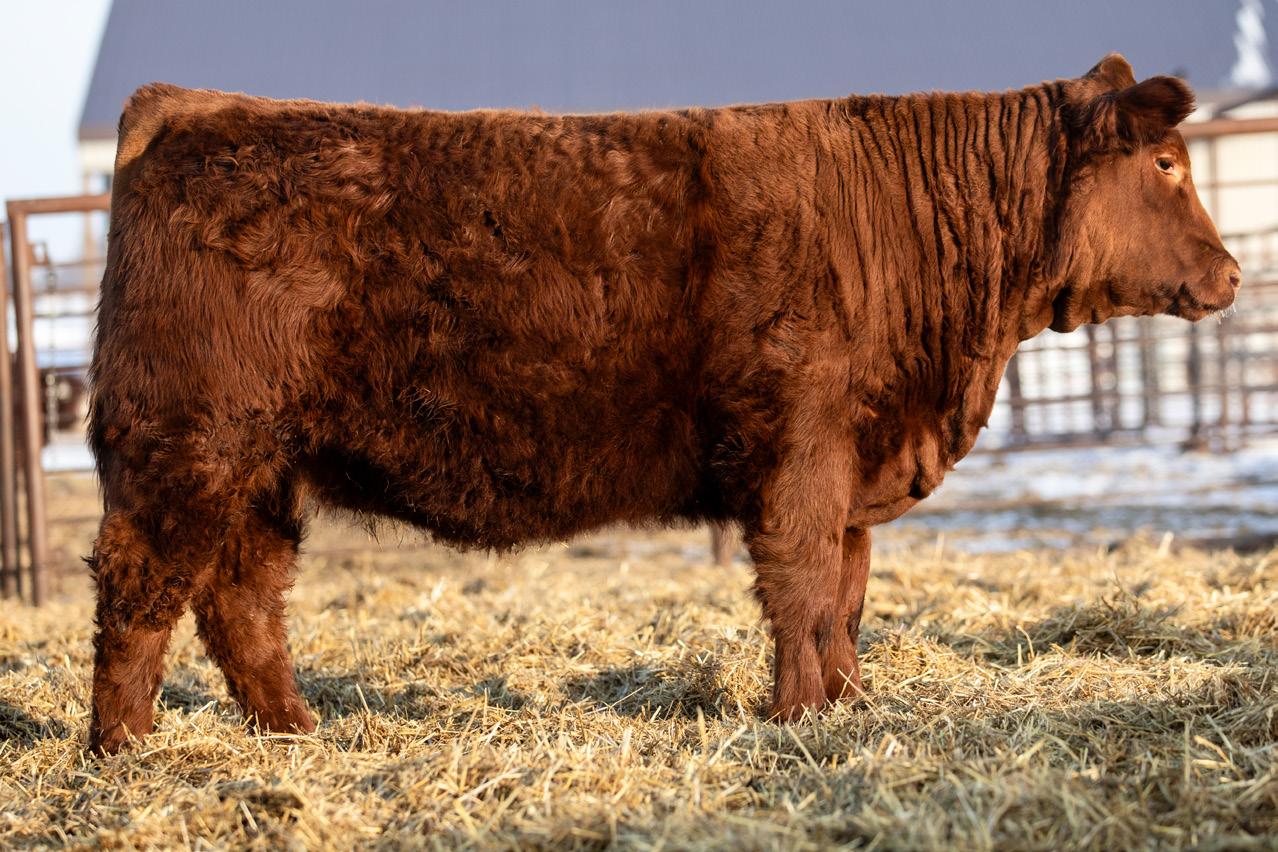 Thick made and deep with a clean front end. His dam produced for 17 years, this is her last son to sell. Her daughter Hillview Crimson 515C is the dam of Lot 16 and Lot 30. Proven cow family that works.