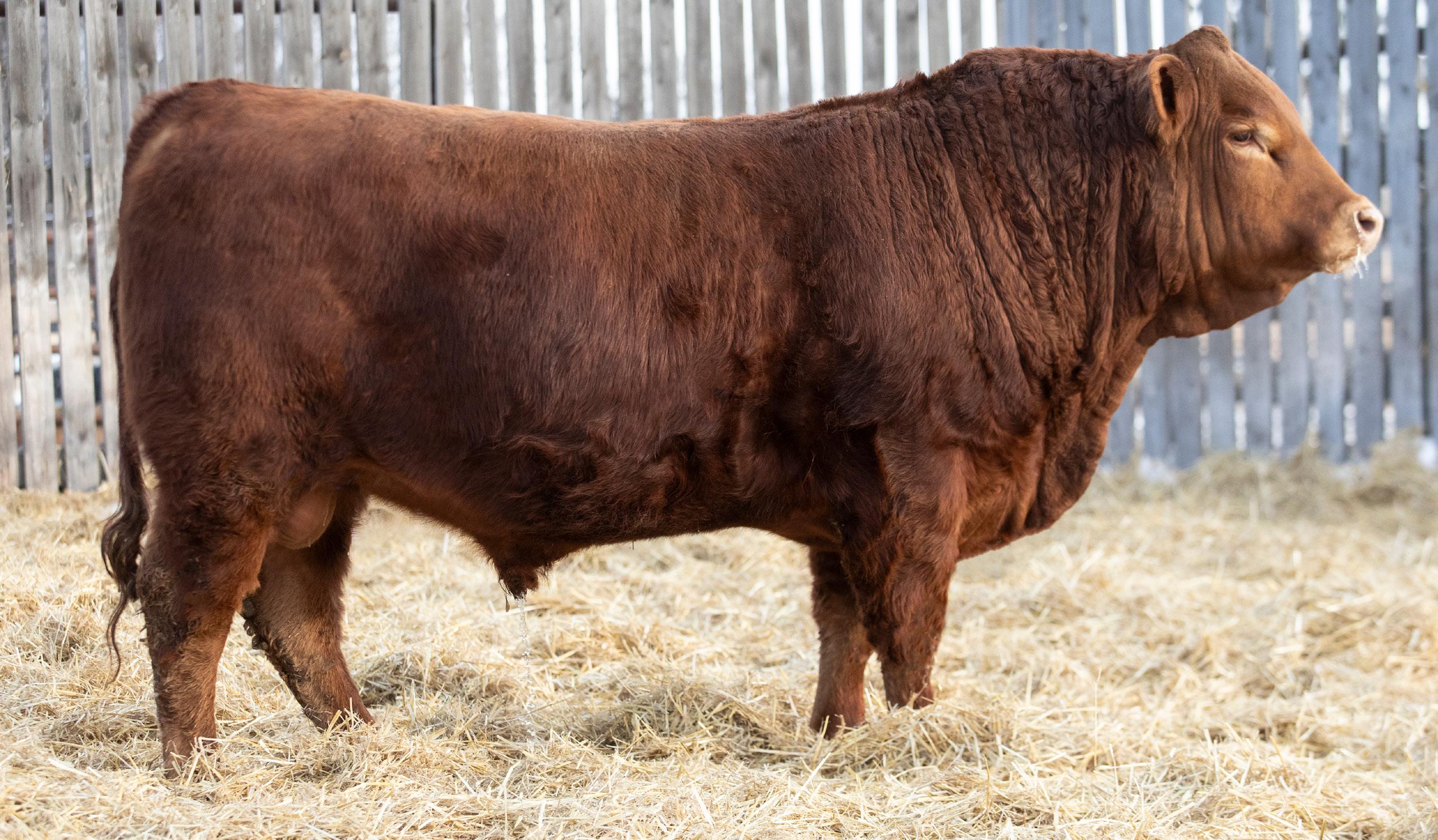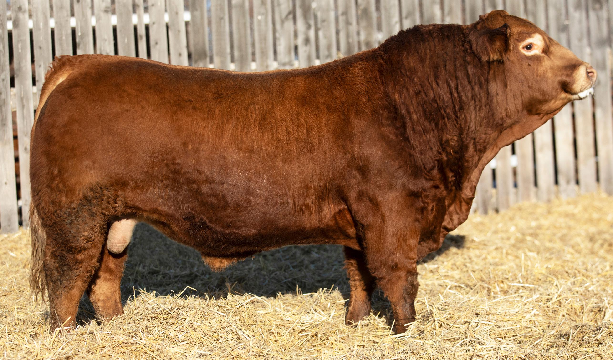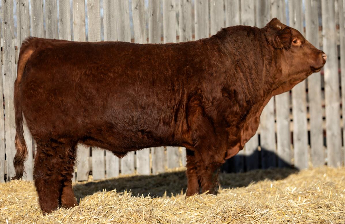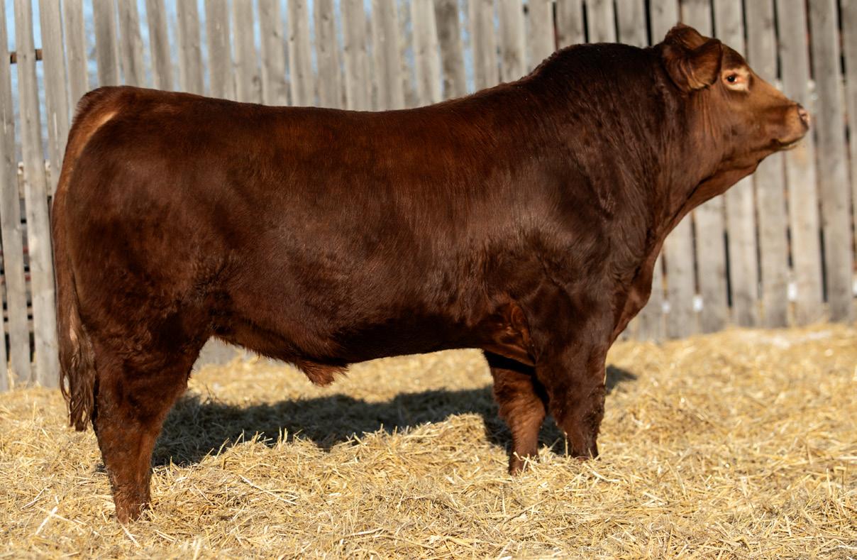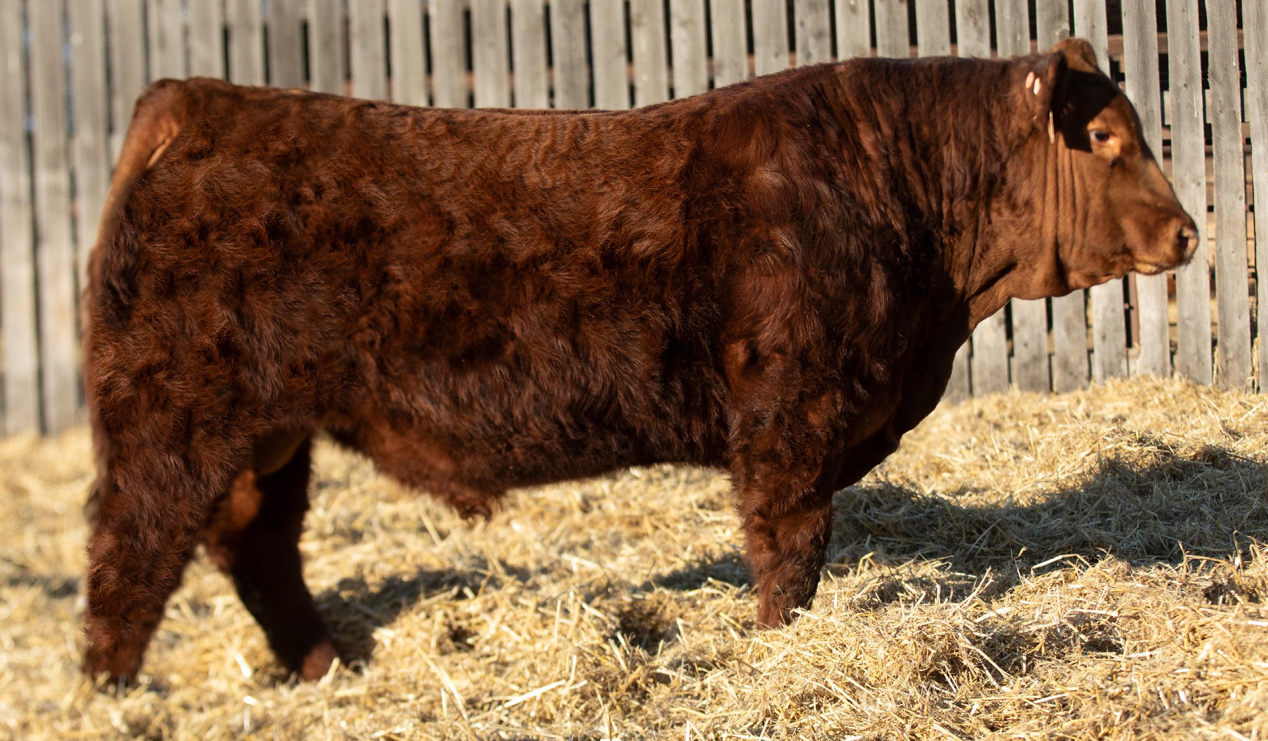 Thick made and deep with a clean front end. His dam produced for 17 years, this is her last son to sell. Her daughter Hillview Crimson 515C is the dam of Lot 16 and Lot 30. Proven cow family that works.