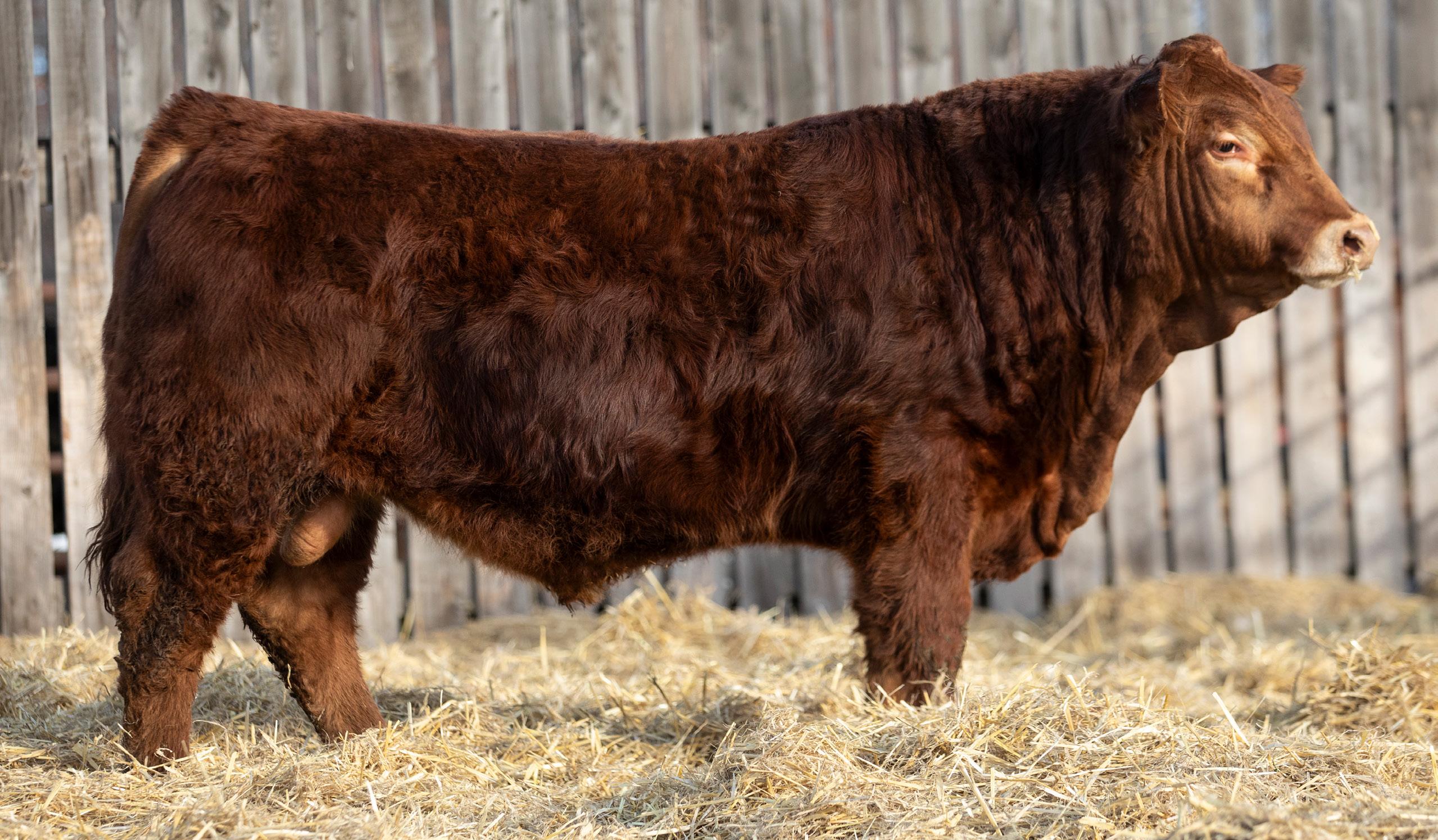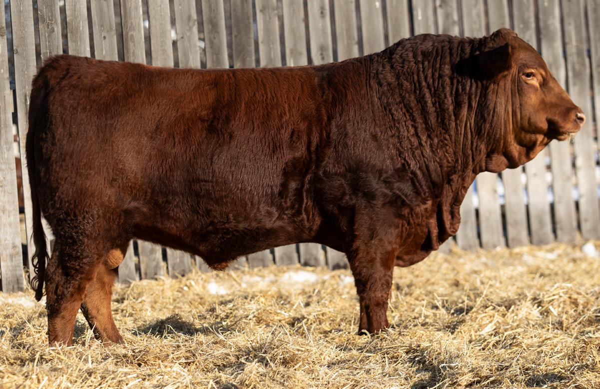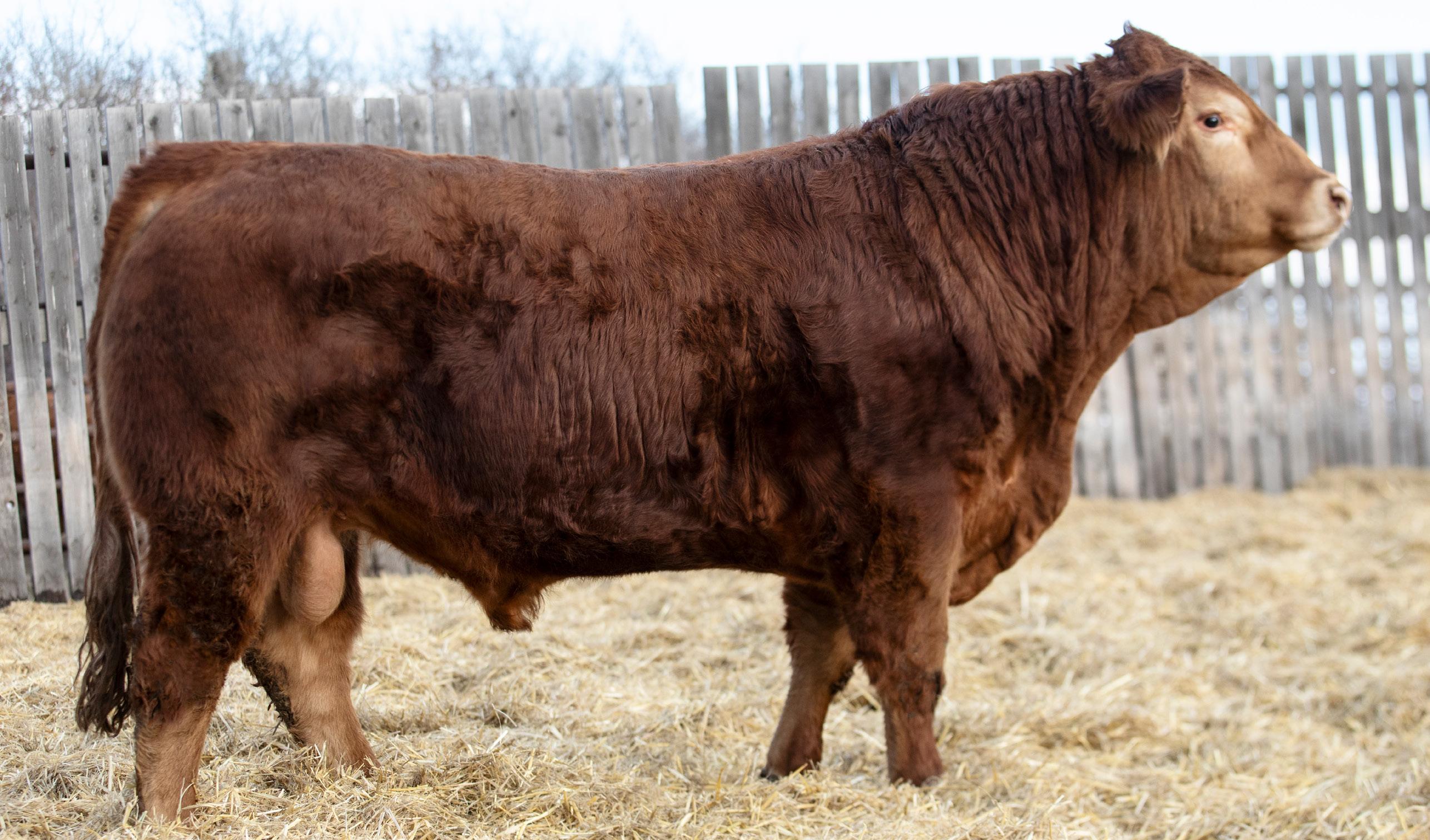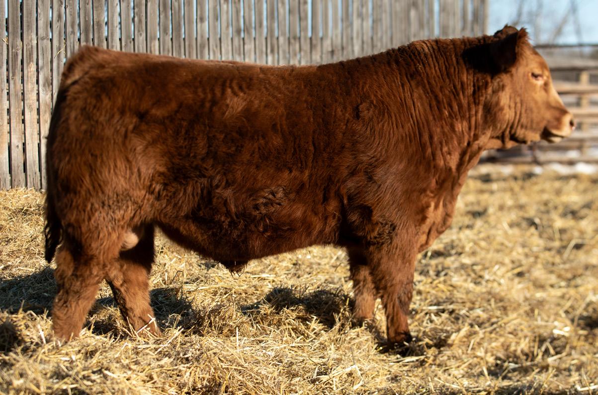 Thick made and deep with a clean front end. His dam produced for 17 years, this is her last son to sell. Her daughter Hillview Crimson 515C is the dam of Lot 16 and Lot 30. Proven cow family that works.