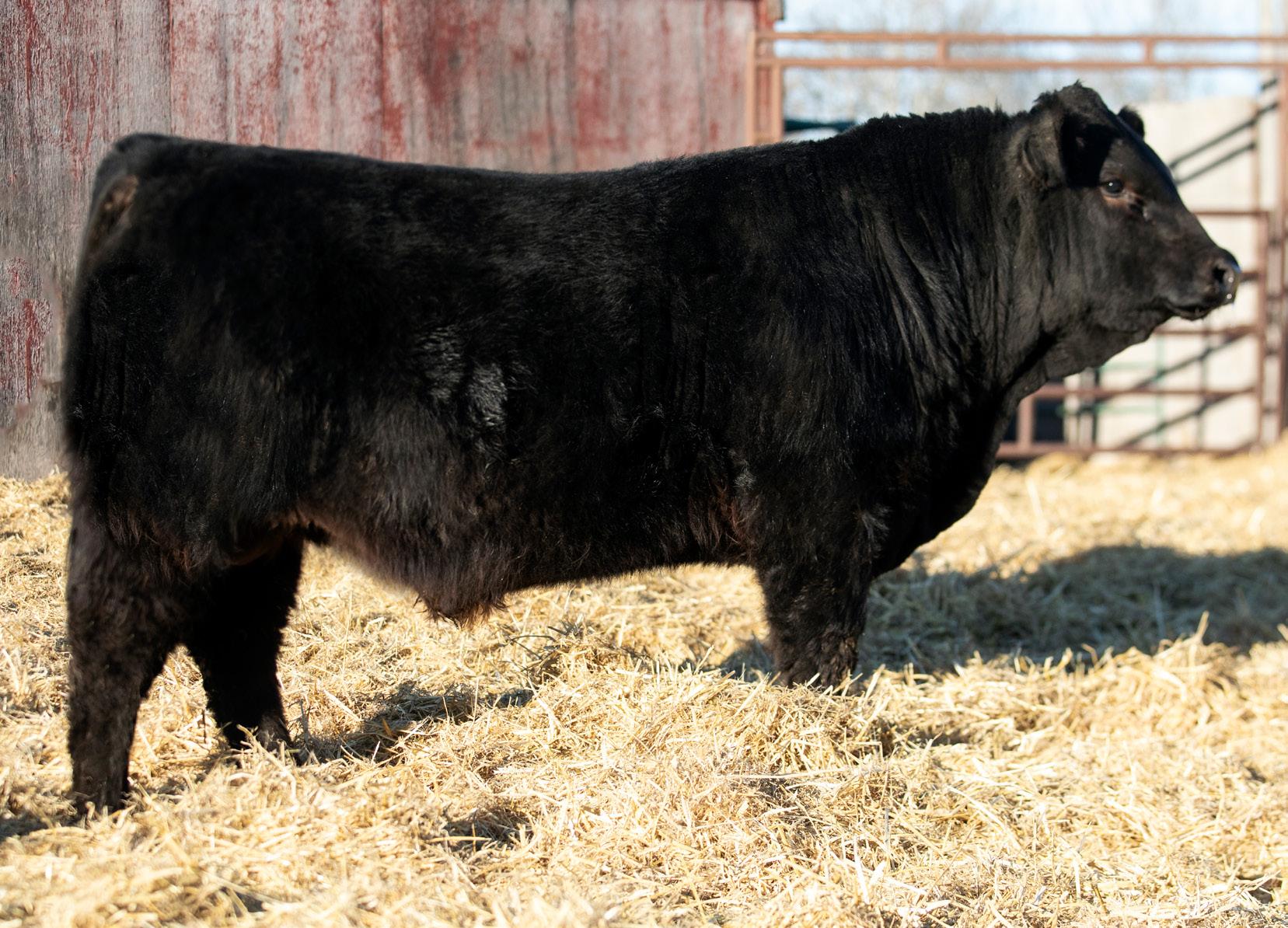 Tremendously long-spined and balanced bull that will add power and pounds while maintaining calving ease. Above breed average for calving ease, BW, scrotal, stayability and marbling. Top 10% of the breed for marbling. Predictable pedigree with a full sister in production in our herd.