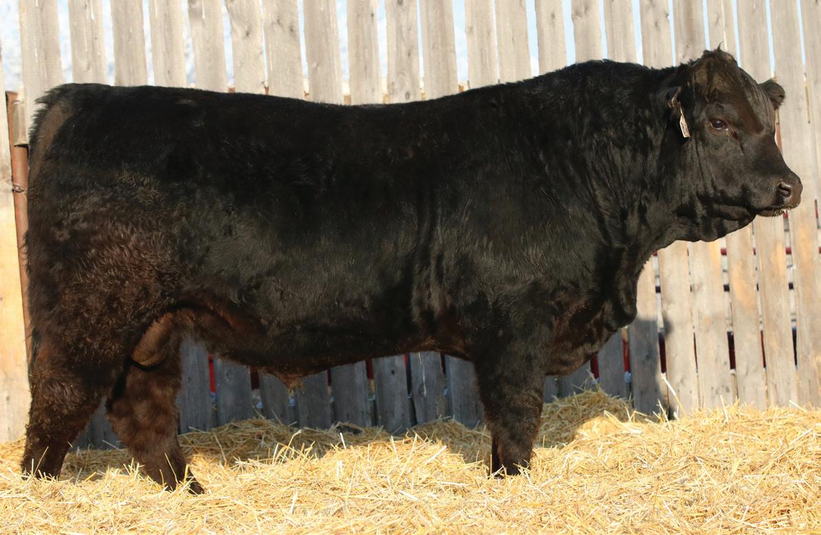 Out of a big, deep bodied no-miss 8 year old cow, 400J is a smooth made bull with loads of length and stretch. Fluid in his movement with a long line of brothers out working in progressive herds. Maternal brothers sold to Michael Lutz, R & L Farms, Sid Hoculak and Vissia Farms