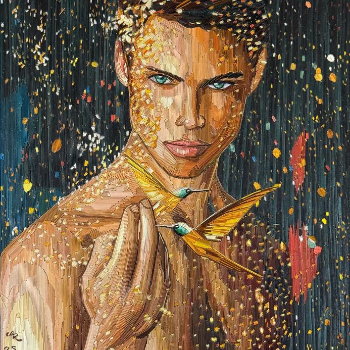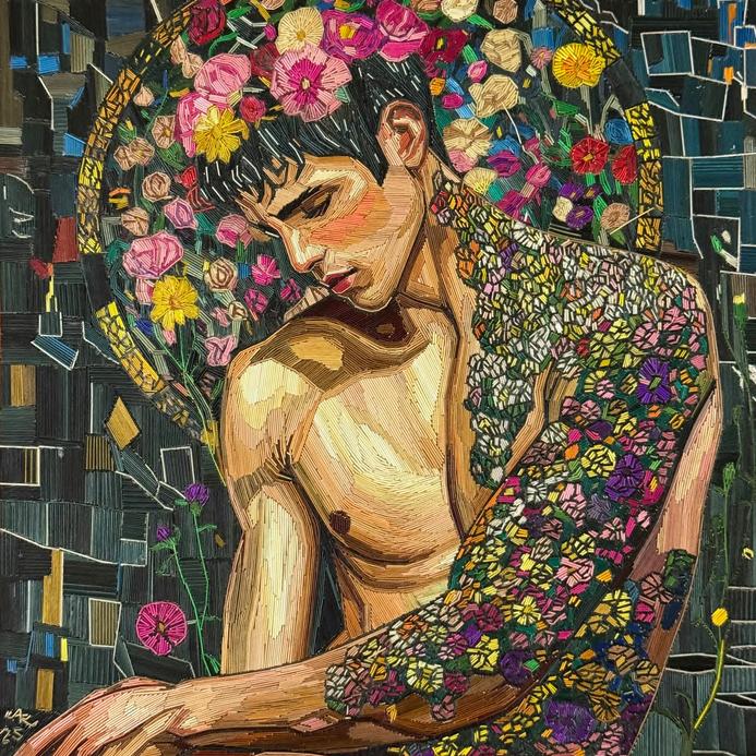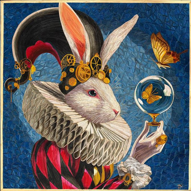 ARIOSTO RIVERA Ariosto Rivera es una firma artística mexicana fundada por Jesús Rivera y Joaquín Ariosto. Este dúo hunde sus raíces en la reinterpretación de la técnica ancestral del arte en popotillo, donde finas fibras vegetales teñidas con tintes naturales se convierten en mosaicos de expresión figurativa. A través de colores vibrantes y texturas inusuales, los artistas plasman figuras surreales, animales majestuosos y figuras del folclor mexicano Estos últimos ataviados con preciosos y complejos textiles nacionales, rindiendo así homenaje a sus raíces y a los orígenes de su técnica Sus obras son expresiones vívidas que entrelazan luz, movimiento y simbolismo, invitando al espectador a explorar un universo donde lo tradicional se fusiona con lo contemporáneo