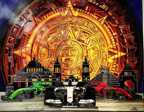 ENERGÍA AZTECA Técnica: Popotillo teñido sobre cera de abeja | Technique: Natural dyed straw on beeswax