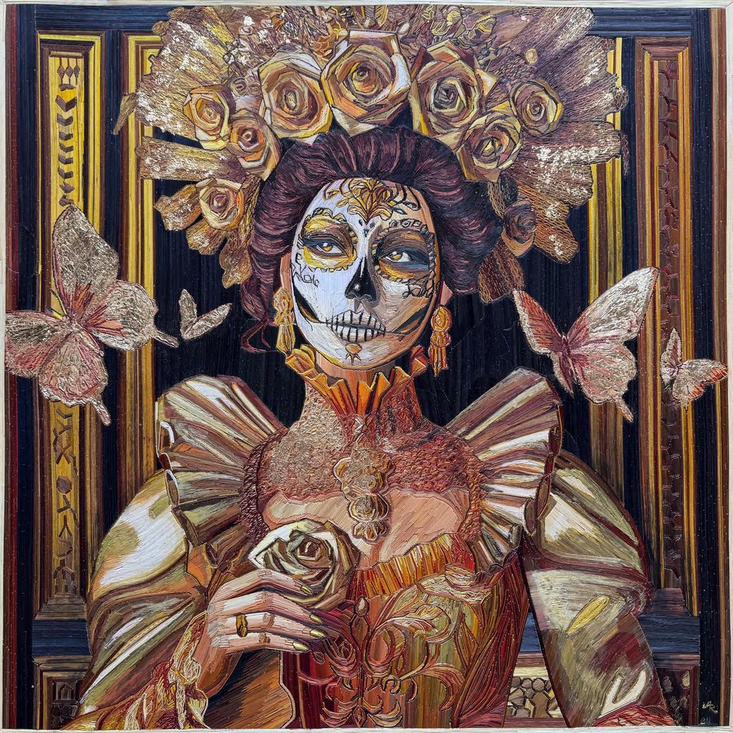 Joaquín ARIOSTO & Jesús RIVERA Ariosto Rivera is an artistic signature founded by Jesús Rivera and Joaquín Ariosto Drawing from the ancient technique of popotillo art where delicate plant fibers dyed with natural hues form intricate mosaics the duo creates vibrant expressions of figurative art Their work pulsates with surreal figures, majestic animals, Day of the Dead's Catrinas, and beings conjured from the depths of their dreams, all rendered in vibrant colors and unique textures Through their mastery of light, movement, and symbolism, Ariosto Rivera invites viewers into a realm where traditional craft meets contemporary narratives.