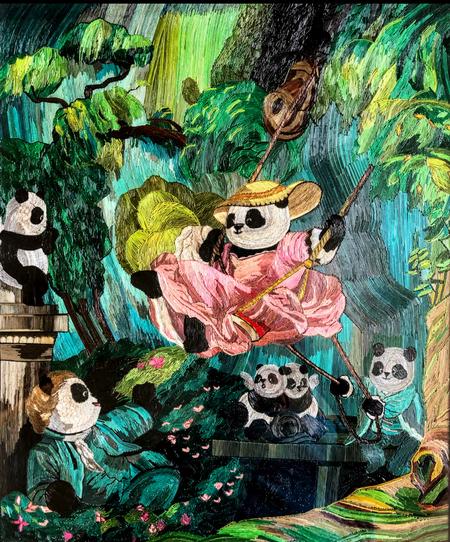 LA PANDA DEL COLUMPIO Técnica: Popotillo teñido sobre cera de abeja | Technique: Natural dyed straw on beeswax