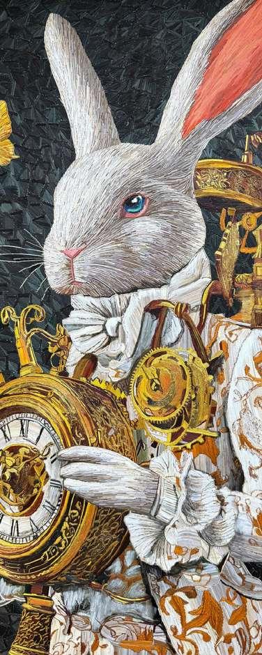 ARIOSTO RIVERA Ariosto Rivera es una firma artística mexicana fundada por Jesús Rivera y Joaquín Ariosto. Este dúo hunde sus raíces en la reinterpretación de la técnica ancestral del arte en popotillo, donde finas fibras vegetales teñidas con tintes naturales se convierten en mosaicos de expresión figurativa. A través de colores vibrantes y texturas inusuales, los artistas plasman figuras surreales, animales majestuosos y figuras del folclor mexicano. Estos últimos ataviados con preciosos y complejos textiles nacionales, rindiendo así homenaje a sus raíces y a los orígenes de su técnica. Sus obras son expresiones vívidas que entrelazan luz, movimiento y simbolismo, invitando al espectador a explorar un universo donde lo tradicional se fusiona con lo contemporáneo.