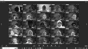 LKMM-TD HMTKI FV-ITS ke-33 dilakukan secara online melalui platform zoom meeting. Meskipun dilakukan secara online, antusiasme yang dimiliki peserta secara online tidak berbeda dengan LKMM-TD yang dilakukan secara offline. Persiapan yang dilakukann oleh para pemandu untuk