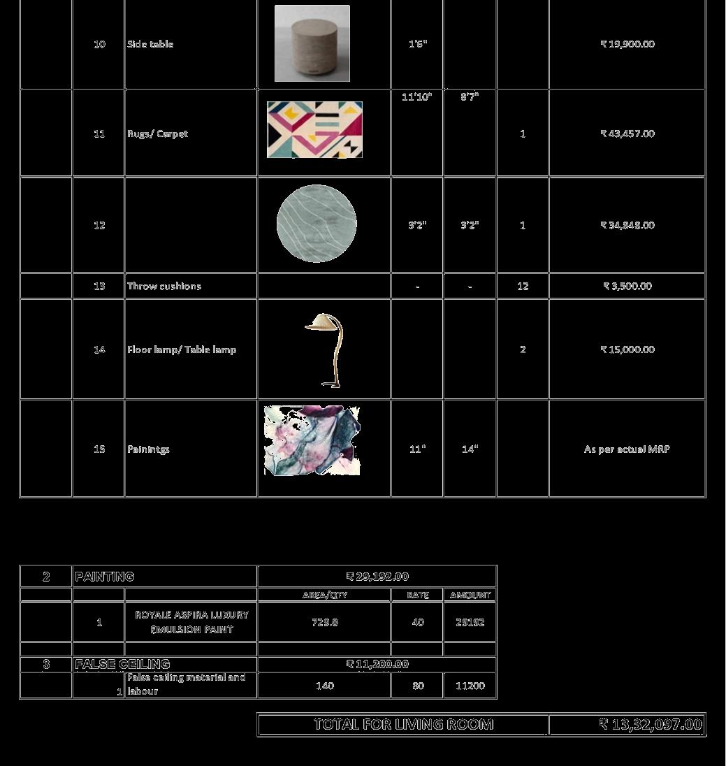• Interior styling • Furniture layouts • Furniture sourcing • Vendors co ordinate • Estimates and budget sheets P11.