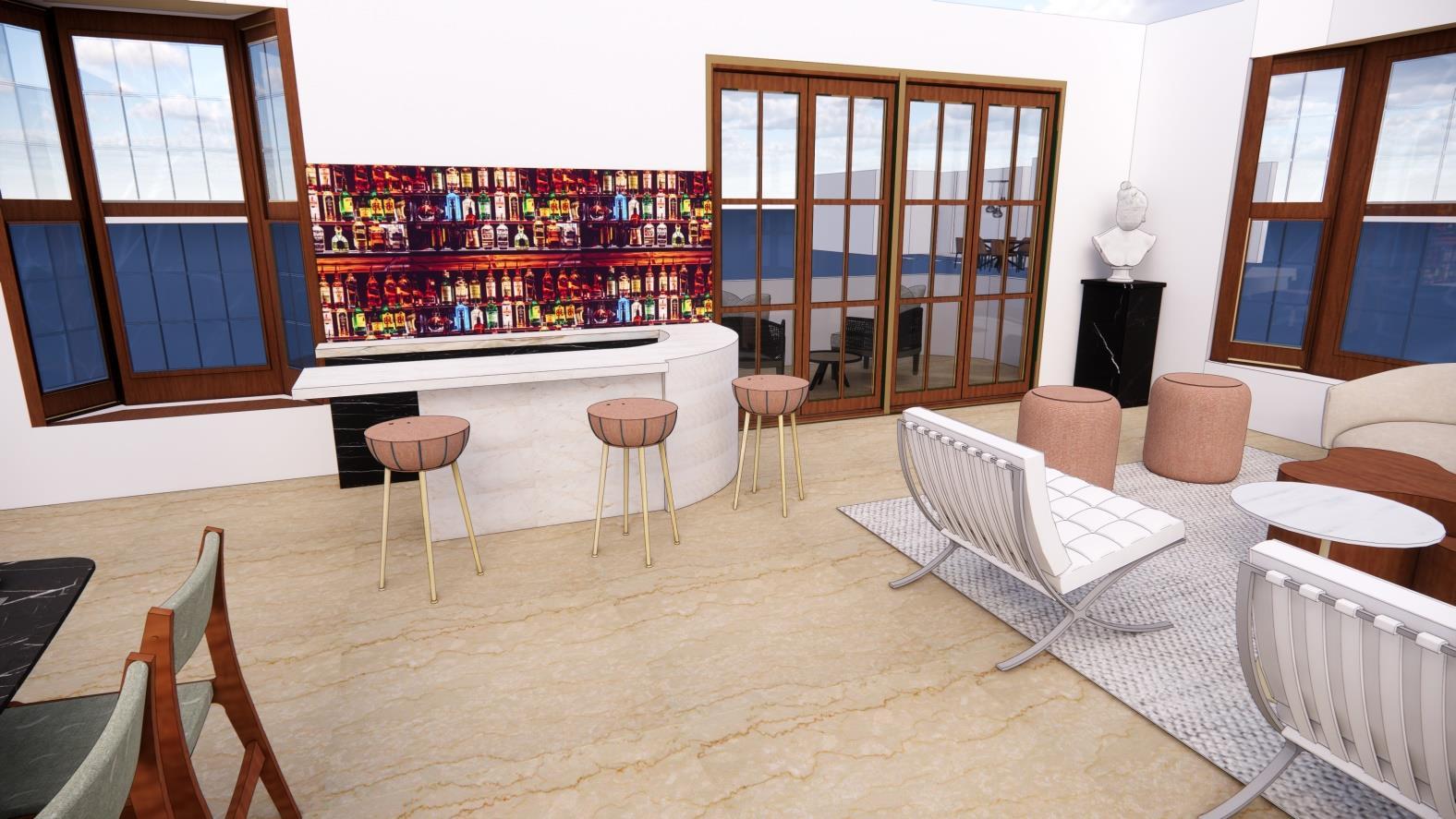 • Furniture layout • Bar design • detailed drawings • Model & renders P10.