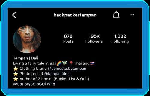 Backpackertampan Nah, kali ini kita beralih ke seorang travel influencer bernama Pandhu Waskitha Adiraharja atau lebih populer dengan nama @backpackertampan di Instagram. Pandhu lahir di Jakarta, 24 Maret 1994. Saat ini, Pandhu dikenal sebagai seorang travel vlogger sekaligus solo backpacker.