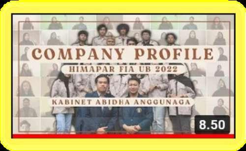 Kami tim creative berterima kasih kepada semua anggota himapar yang sudah antusias dalam agenda company profile ini sehingga agenda ini bisa berjalan dengan lancar Terima kasih juga kepada penonton yang sudah menonton, like dan komentar ABIDHA ANGGUNAGA Isi dari company profile adalah perkenalan visi dan misi dari kabinet abidha anggunaga lalu pengenalan seluru anggota himapar dimulai dari BPO, BPI, BPH dan Staff, jadi kalau kalian kepo banget siapa aja sih yang ada di himapar, scan barcode yang di halaman depan yah !! By the way, ada fun fact tentang company profile loh, yaitu pengambilan video hanya di lakukan selama satu hari dan proses editing hanya satu minggu lho !! Keren banget ga siiihhhhh. Company profile ini di upload pada tanggal 22 Maret 2022 di chanel youtube dan akun Instagram Himapar.