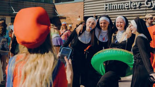 Gymnasium med et stærkt socialt liv, hvor vi kender hinanden godt og både dyrker fællesskabet og pladsen til at være forskellige. Det er også et Himmelev Gymnasium, hvor vi stiller skarpt på din læring og ikke på præstationsræset. Uddannelse handler nemlig ikke om at komme først. Uddannelse handler om udvikling, om dannelse og om en tryghed i klasseværelset, der giver dig lyst og mod til at deltage, engagere dig og yde dit bedste.