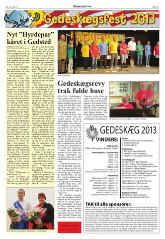 Gedeskægsfest 2013 Nyt ”Hyrdepar” kåret i Gedsted Af Hanne Grabow GEDSTED: Som et af de sidste programpunkter og et meget populært indslag i årets Gedeskægsfest ,er når man søndag eftermiddag skal kåre et nyt par som årets ”Gedehyrder”. I år måtte eftermiddagens aktiviteter afvikles i dets store festtelt, da vejret var lidt uforudsigeligt. Eftermiddagens program var i store træk udtrækning af forskellige vindere der havde købt festens forskellige lodder i ugens løb og også vinderne i optoget blev fundet. Det er Knaberparret fra Aalestrup, Preben Pedersen og Lone Sørensen, der sammen med den ny kårne ”Kringlevrider” fra Ulbjerg, Niels Højer, var de strenge dommere, der skulle finde vinderne af optoget, som havde fundet sted tidligere på dagen. Endelig efter de mange vindere var blevet fundet, var det tid for de to konferenciers Erik Kragelund og Niels Heebøll at betræde scenen og først skulle der tages behørig afsked med det afgående ”Hyrdepar”, Solveig Højgaard og Karl Jakob Bisgaard. Parret fik blomster, gaver og ordet for at fortælle lidt, om de aktiviteter de havde deltaget i året igennem. De udtrykte også stor taknemlig for de mange oplevelser og for den store opbakning, de havde fået i deres tid som ”Hyrdepar” i Gedsted. Herefter skulle Erik Kragelund og Niels Heebøll i gang med deres lange, ofte lidt kringlet, præsentation af de to nye personer, der skulle have hvervet det næste år: Mette Thillemann og Bent Østrup Loft. Mette Thillemann har boet på 35 forskellige adresser, kunne Niels Heebøll røbe og dermed også