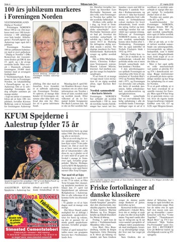 100 års jubilæum markeres i Foreningen Norden VESTHIMMERLAND: Dejlig er Norden! Foreningen NORDEN bliver 100 år i år. Det markeres med over 100 festaktiviteter i 100 afdelinger over hele landet. Afdelingerne i Farsø/Løgstør og i Aalestrup tager også del i jubilæet. Foreningen Nordens 100 års jubilæum kulminerer med et stort gallashow ” Dejlig er Norden” i DRs Koncertsal, der transmitteres direkte på DR K den 15. april, og i de øvrige nordiske lande. Men overalt i Danmark arbejder foreningens 10.000 medlemmer med at arrangere festligheder. I Vesthimmerlands Kommune er der to Foreninger Norden, en lokalafdeling i Farsø/Løgstør og en i Aalestrup. Det er to selvstændige foreninger, der dog arbejder sammen på mange måder. - Lige nu sætter vi sammen fokus på at fejre 100- års jubilæet, fortæller Kirsten Bollerup, som er formand for foreningens Aalestrup